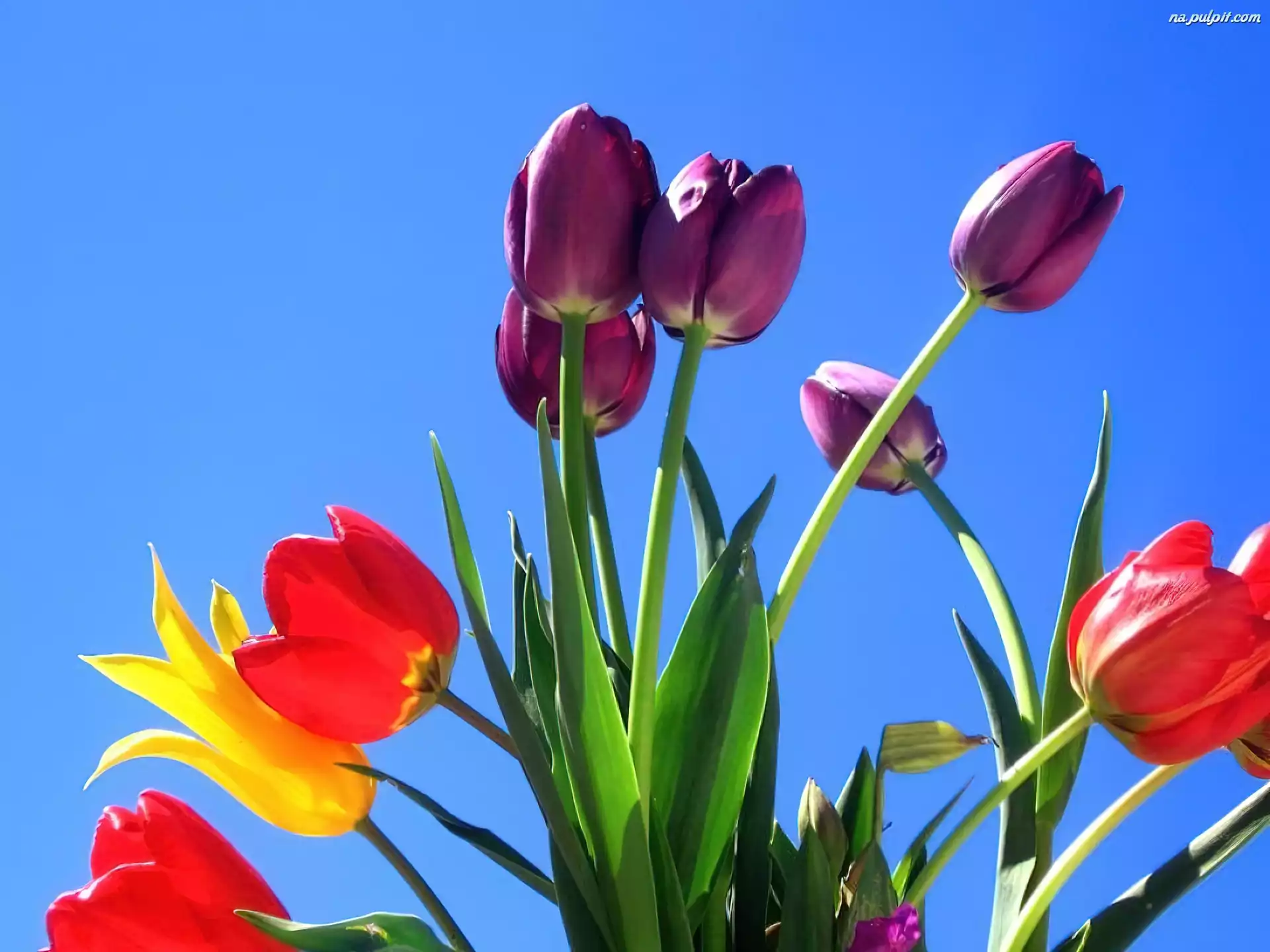 Niebo, Tulipany, Kolorowe, Niebieskie Na Pulpit