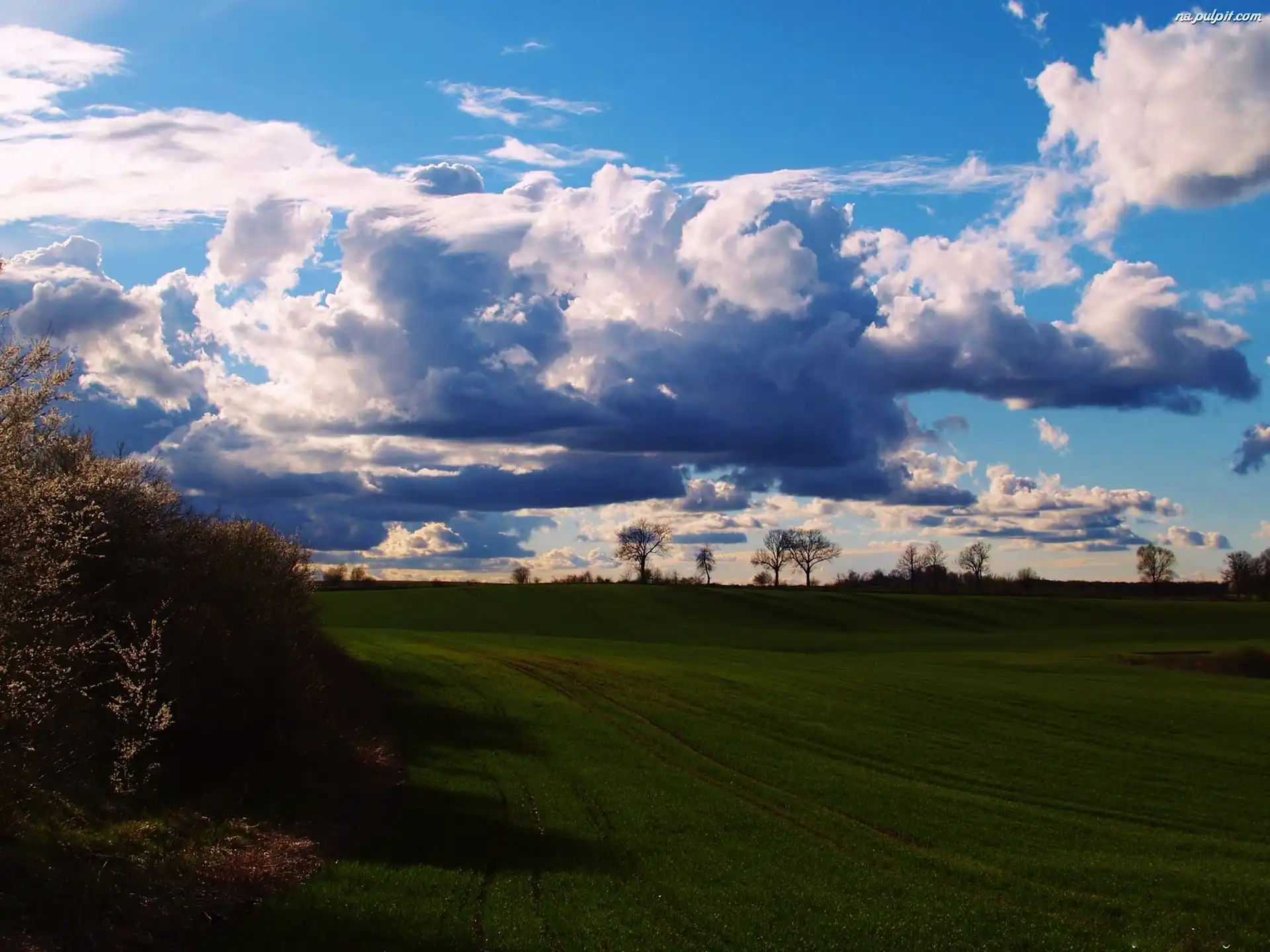 Niebo, Pole, Krzewy, Chmury Na Pulpit