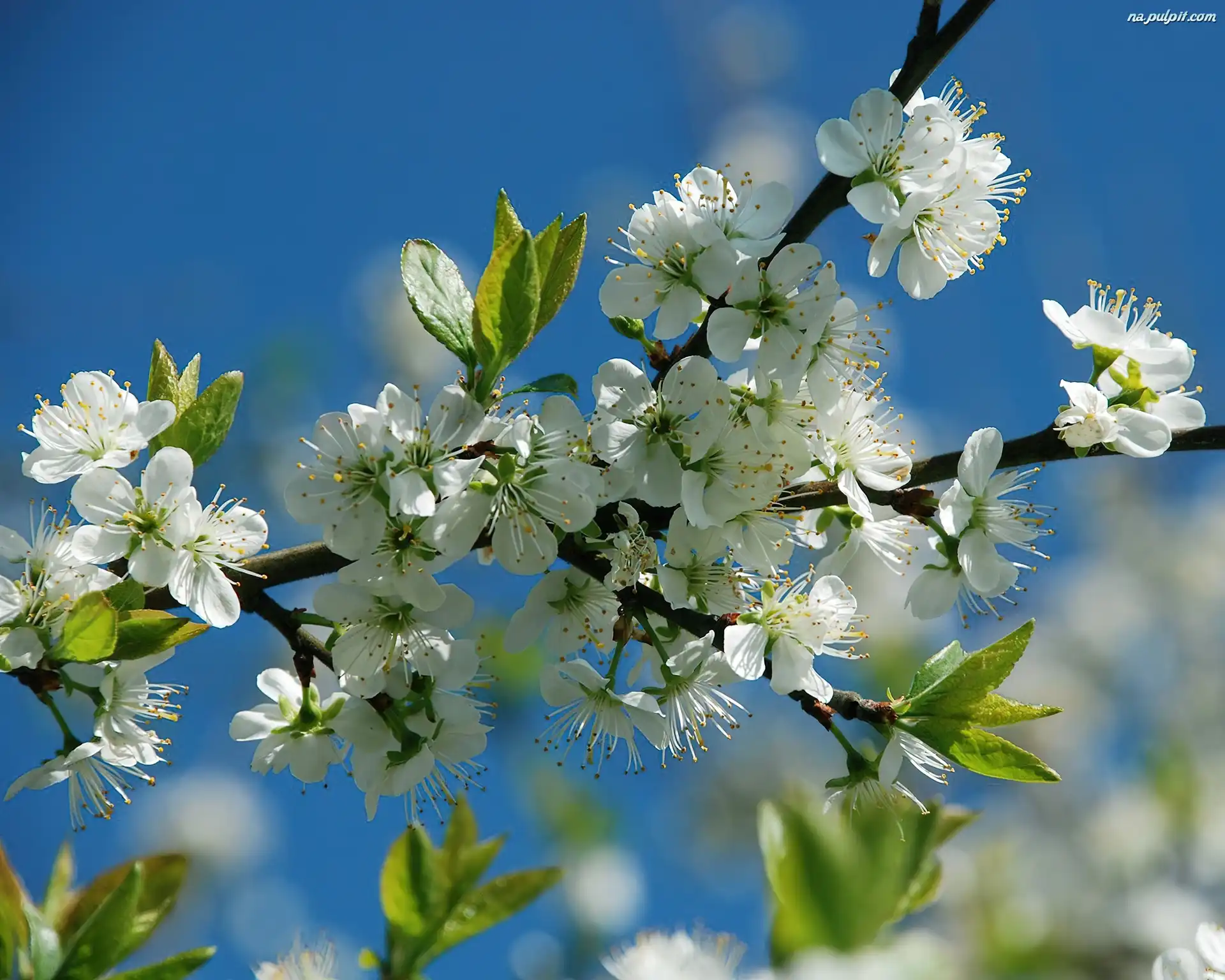 Niebo, Owocowego, Gałązka, Kwitnąca, Drzewa Na Pulpit