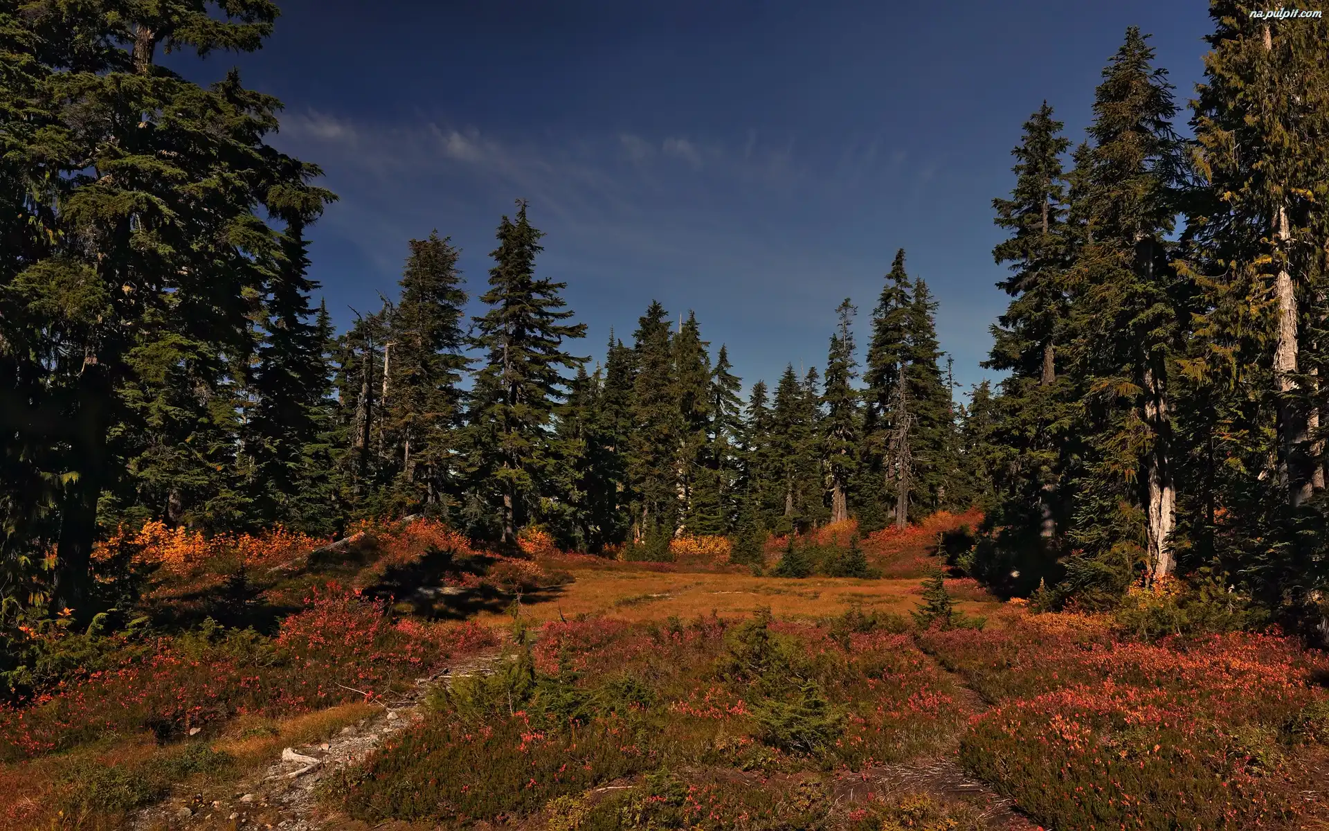 Drzewa, G贸ra, Niebo Drzewa, G贸ry, Jezioro Zima, Las Las, Kanada, Jezioro Las, Bajorko choinki, G贸ry, Drzewa Drzewo, Gruby, Pie艅 Drzewa, Jesie艅, G贸ry, Chmurki Morze, Drzewo, Ska艂a Kwiaty, Las, Kolorowe Drzewo, Jesie艅 Zach贸d S艂o艅ca, Drzewo Drzewo, 艢cia偶ka Droga, Jesie艅, Z艂ota, Prosta