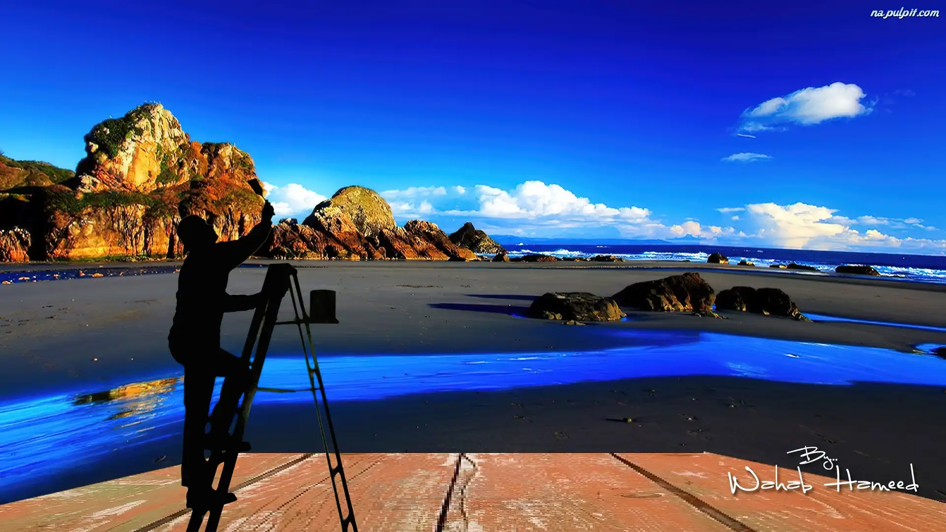 Niebo, Pędzel, Malarz, Mężczyzna, Drabina Na Pulpit