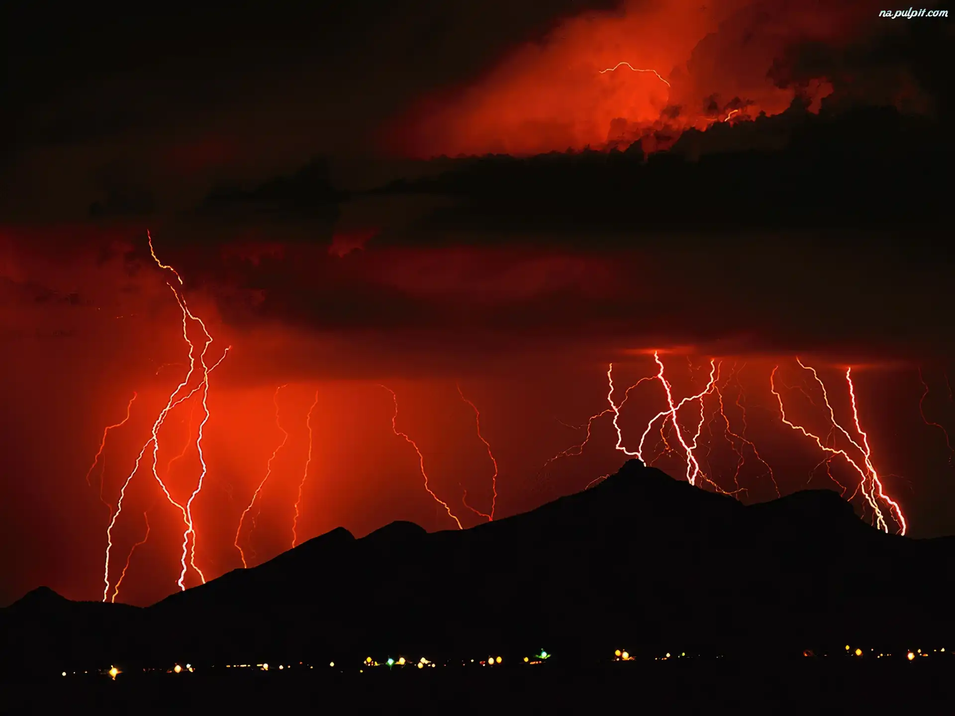 Niebo, Pioruny, Miasto, Czerwone Na Pulpit