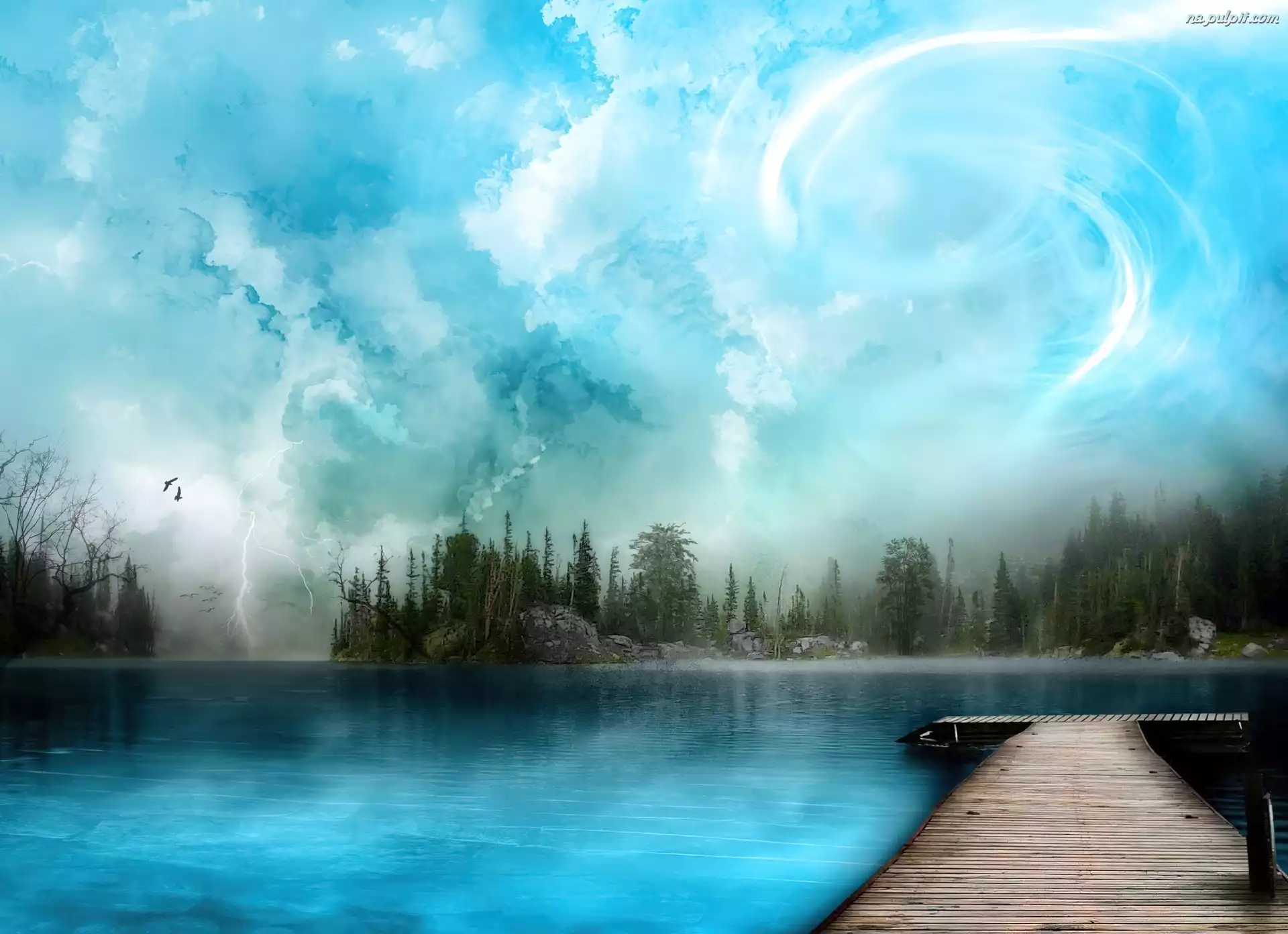 Niebo, Jeziorko, Molo, Mgliste Na Pulpit