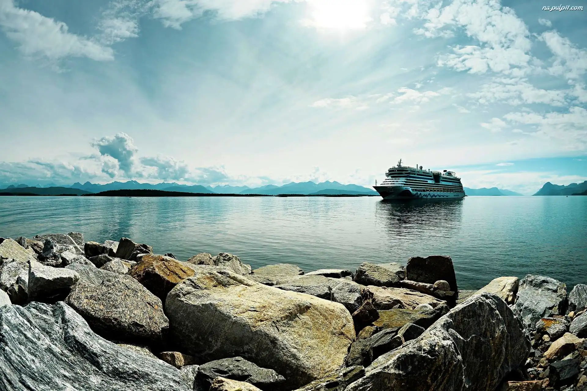 Niebo, Kamienie, Morze, Statek Na Pulpit