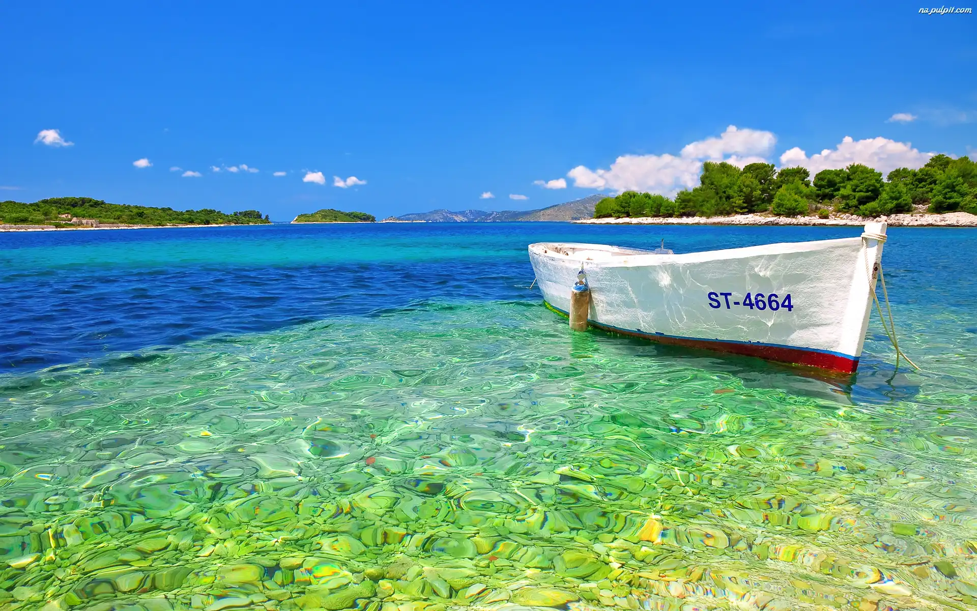 Niebo, Łódka, Morze, Drzewa Na Pulpit