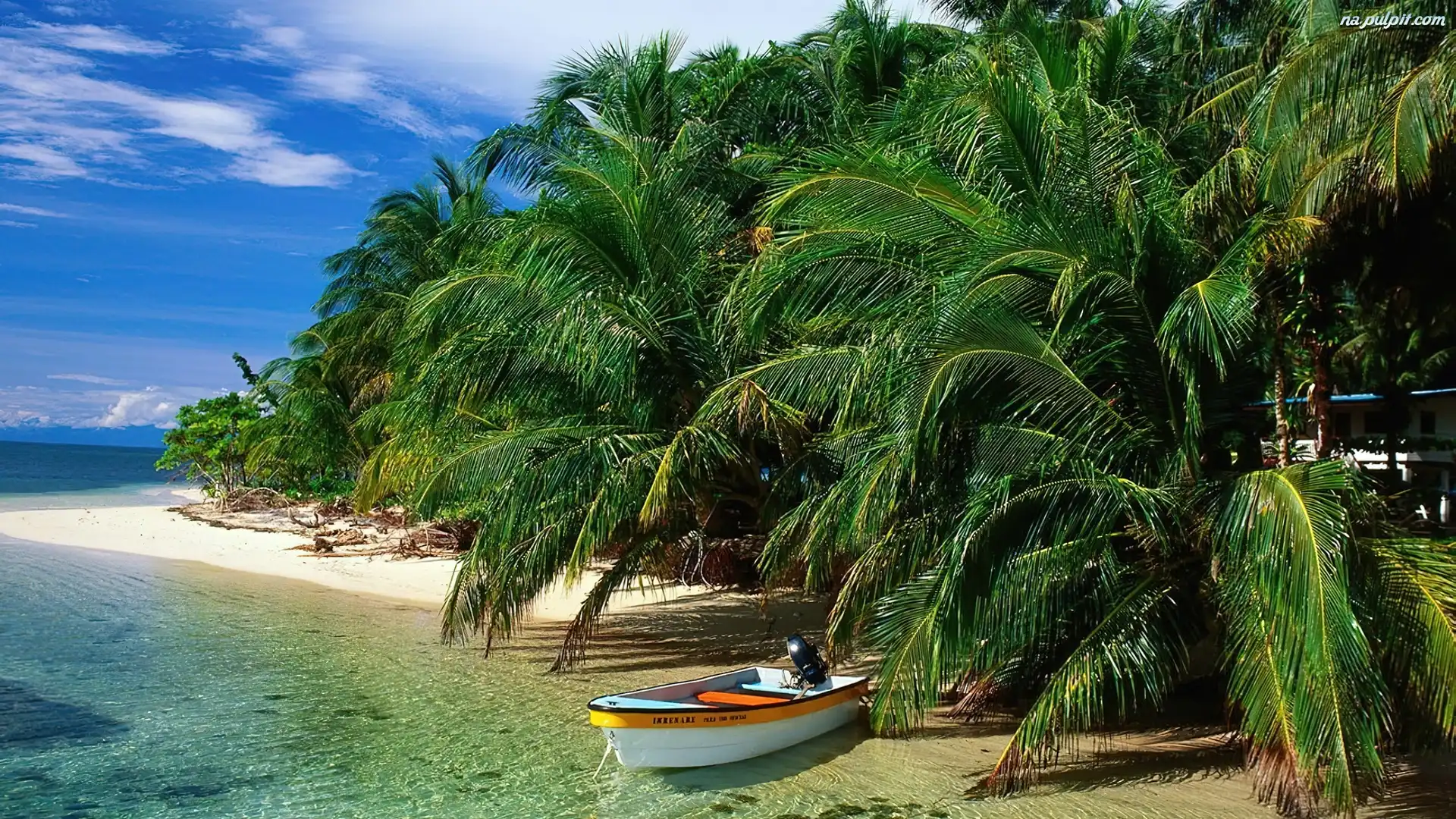 Łódka, Morze, Niebo, Palmy Na Pulpit