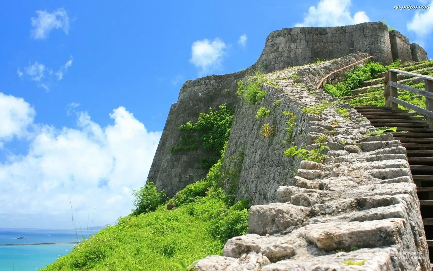 Niebo, Trawa, Schody, Morze, Chmury Na Pulpit