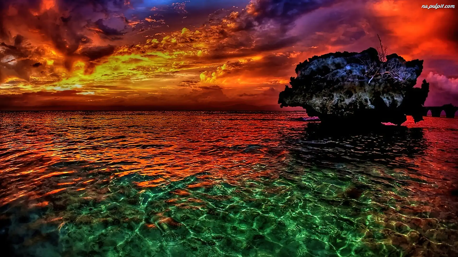 Niebo, Kolorowe, Skała, Morze, Zachmurzone Na Pulpit