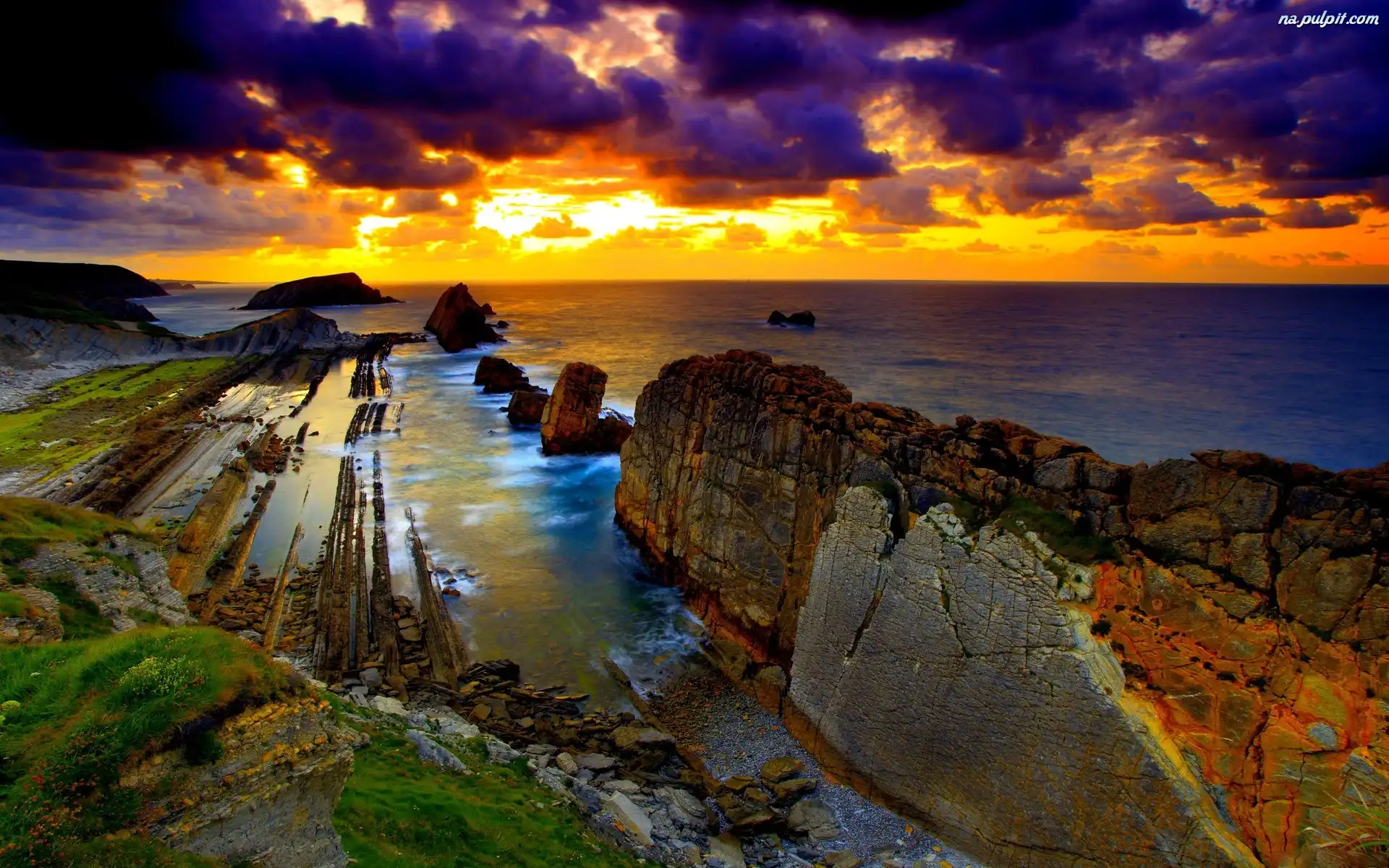 Niebo, Skały, Morze, Zachmurzone Na Pulpit