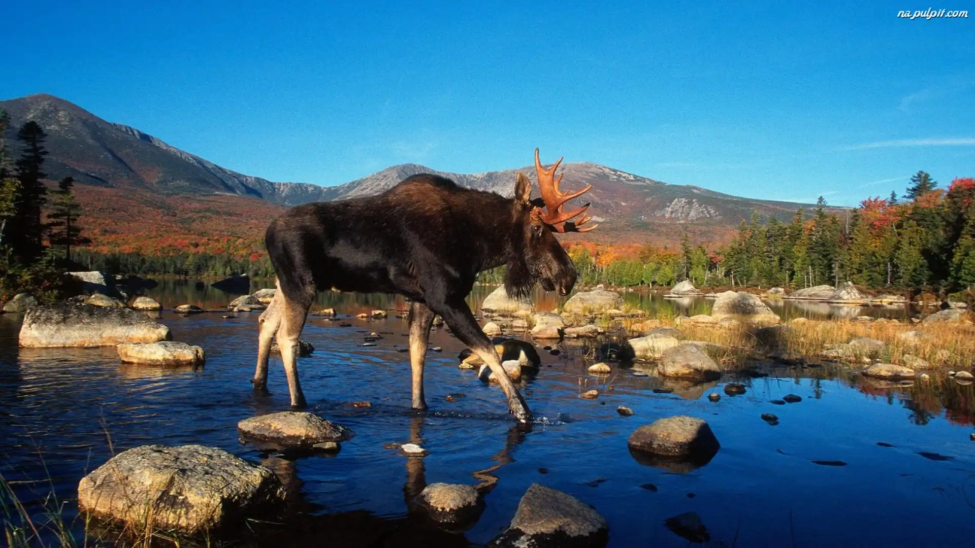 Niebo, Góry, Rzeka, Łoś, Las Na Pulpit