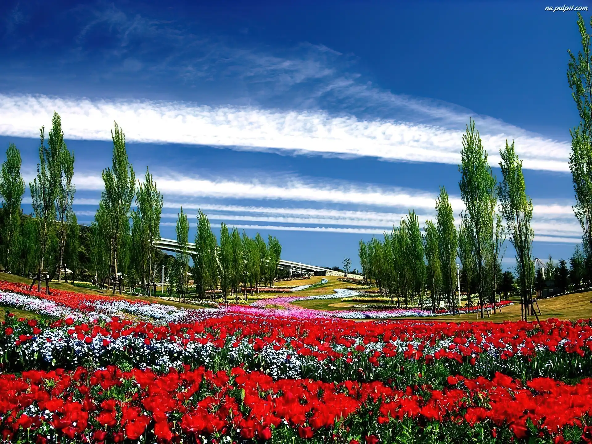Niebo, Drzewa, Kwiatowe, Pole, Chmury Na Pulpit