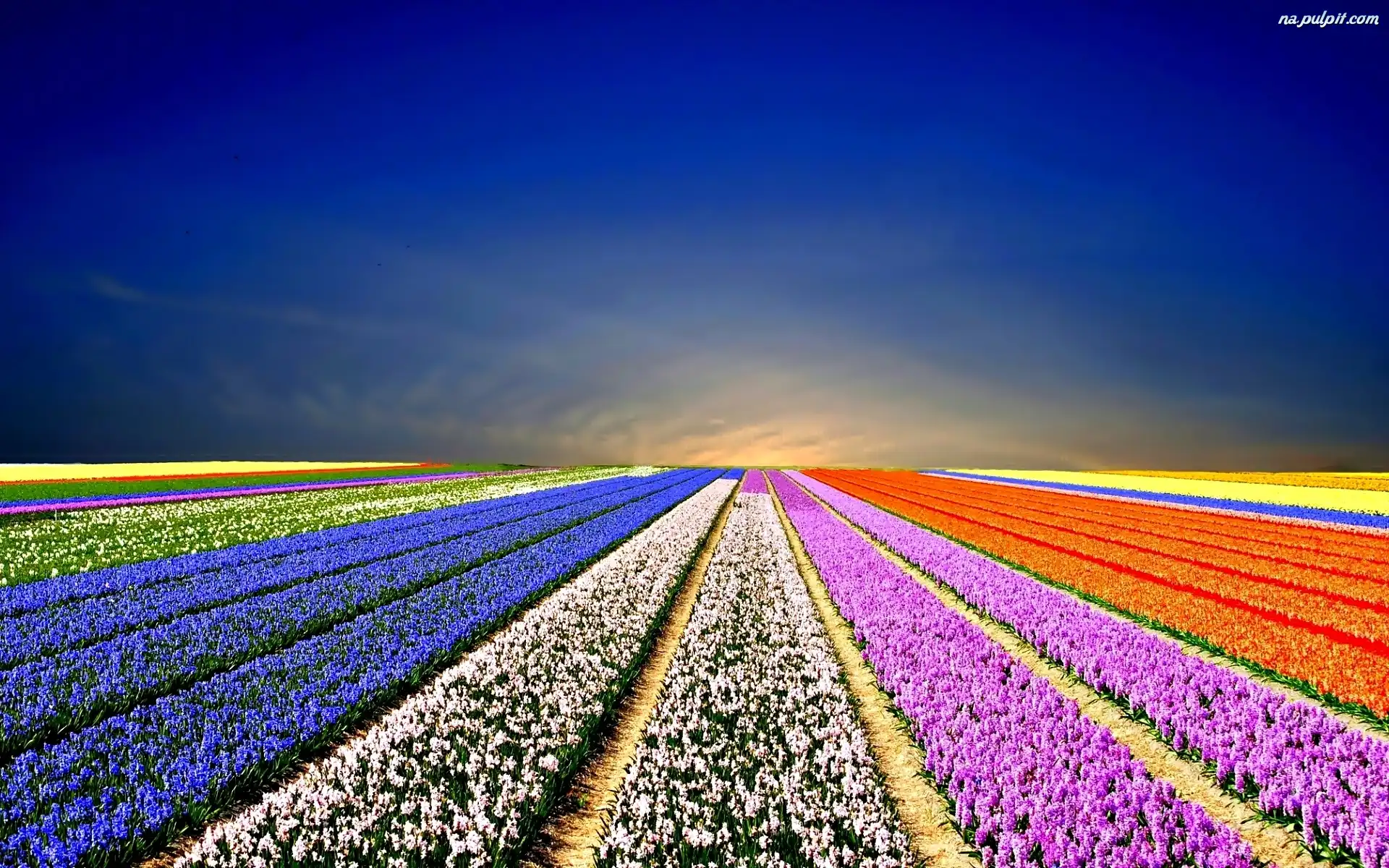 Niebo, Kwiaty, Pole, Tulipany Na Pulpit
