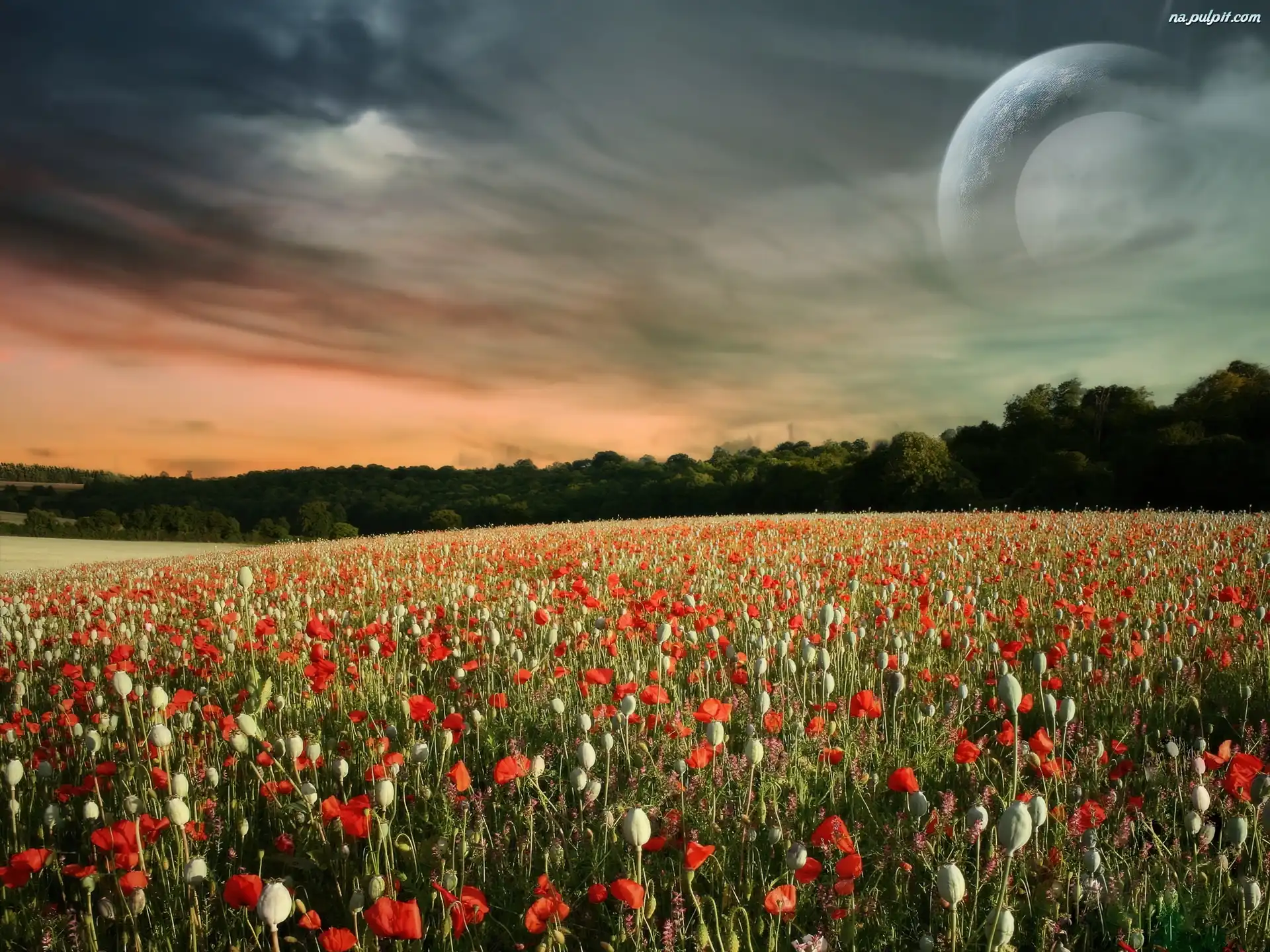 Niebo, Mak, Pole, Drzewa Na Pulpit