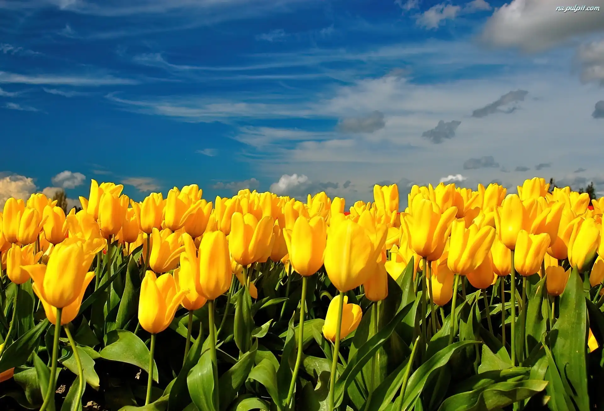 Niebo, Żółtych, Pole, Tulipanów Na Pulpit