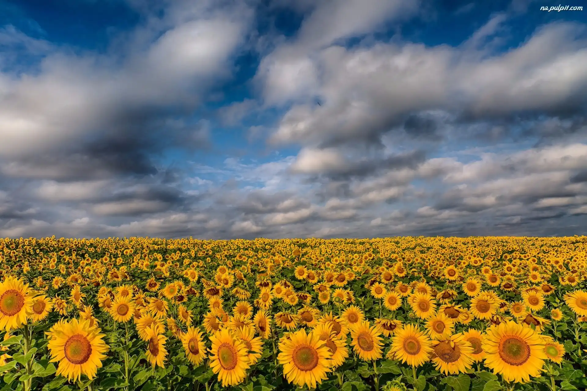 Niebo, Słoneczniki, Pole, Pochmurne Na Pulpit