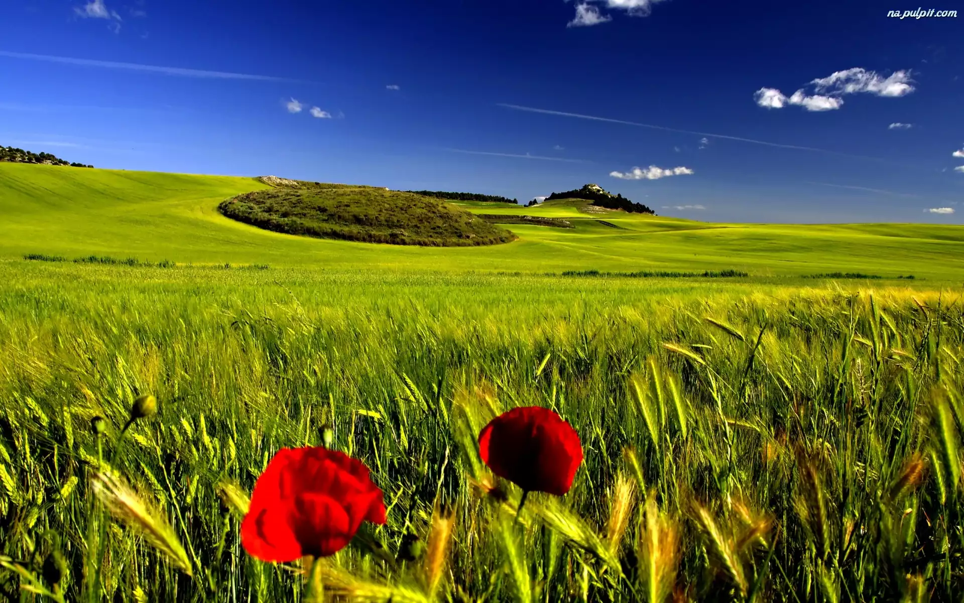 Niebo, Zboże, Pole, Maki Na Pulpit