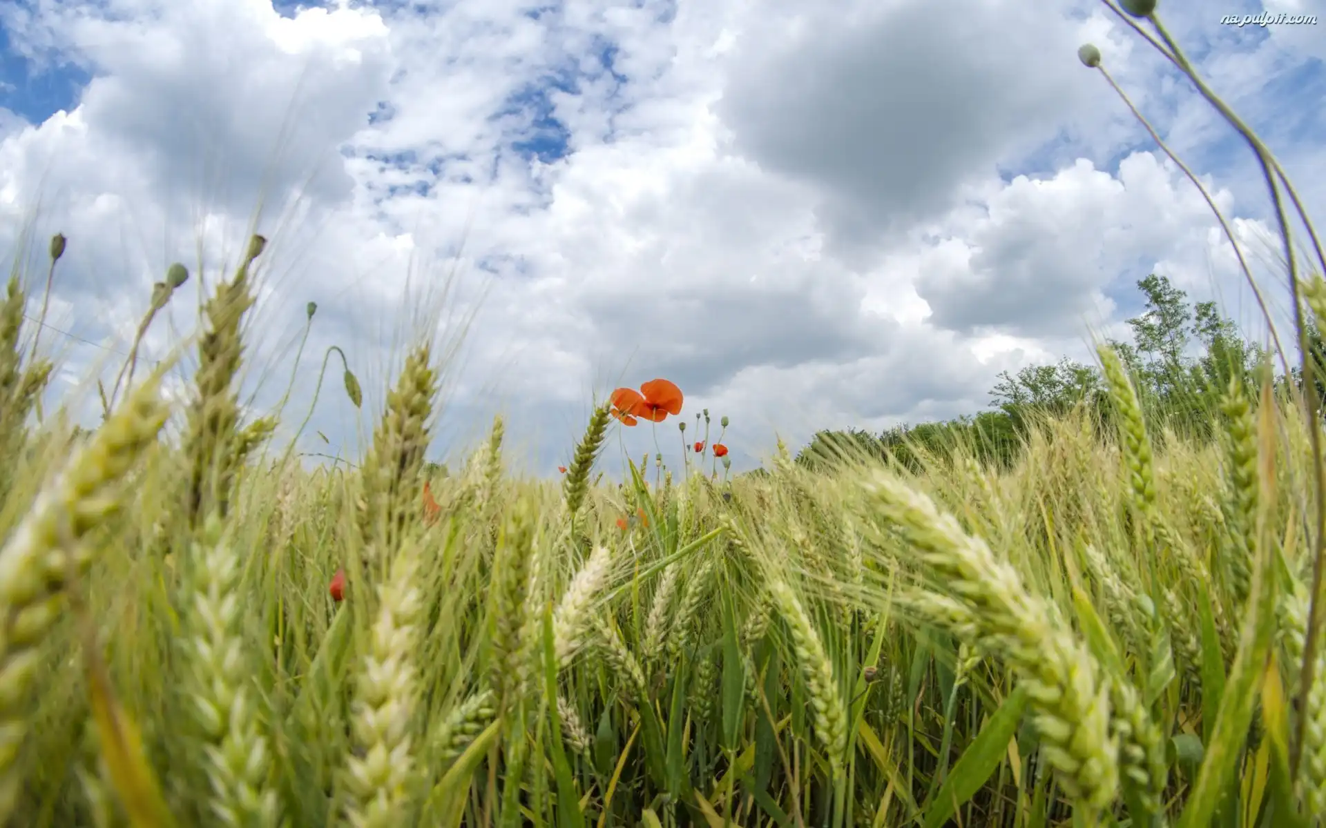 Niebo, Zboże, Pole, Maki Na Pulpit