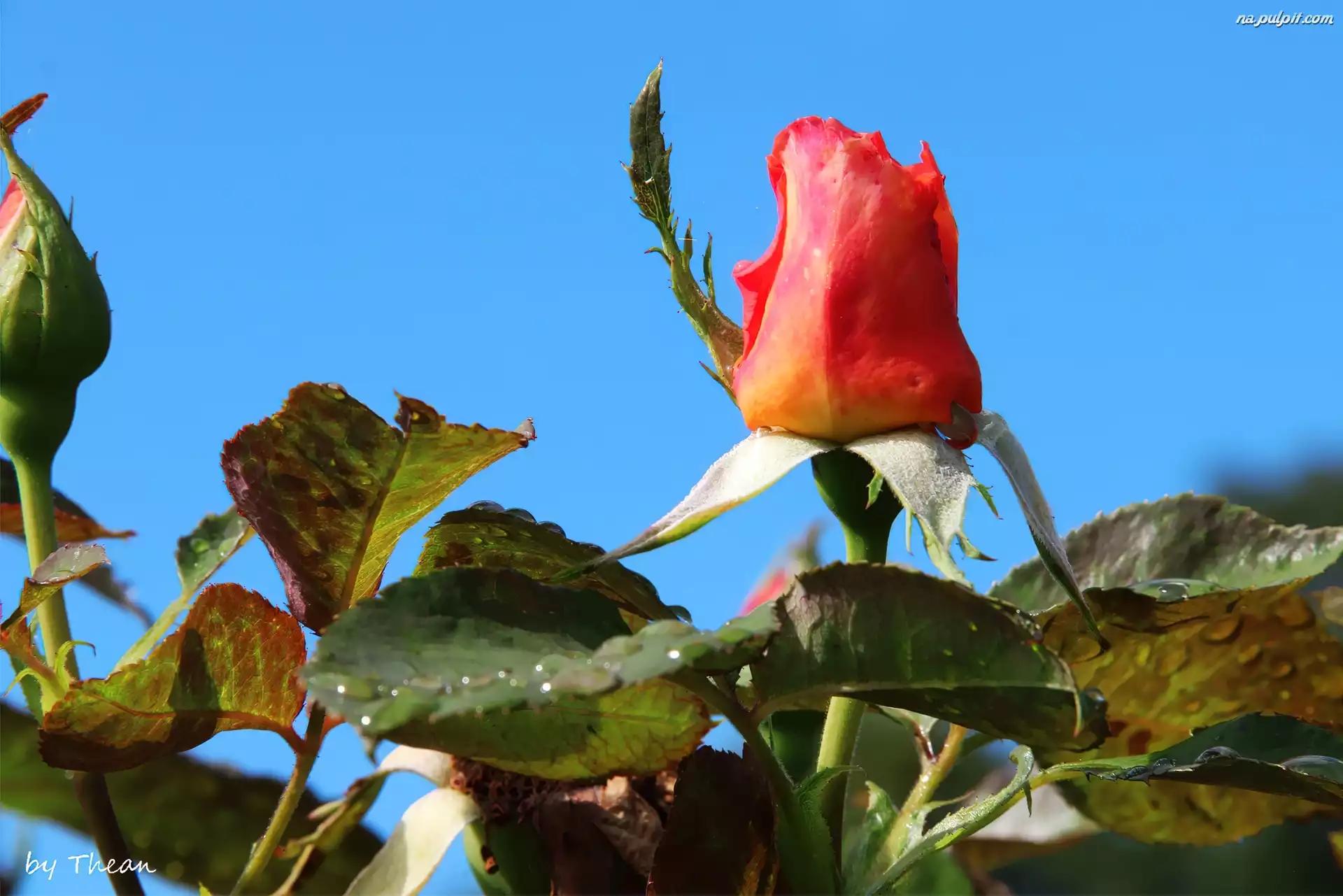 Niebo, Pąk, Herbaciana, Róża, Błękitne Na Pulpit