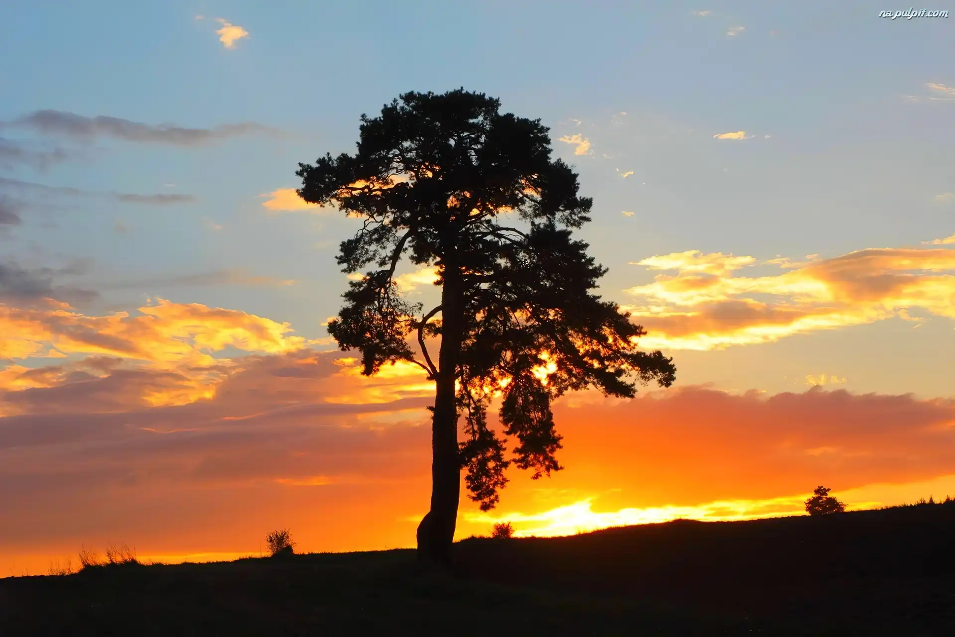 Niebo, Zachód, Sosna, Samotna, Słońca