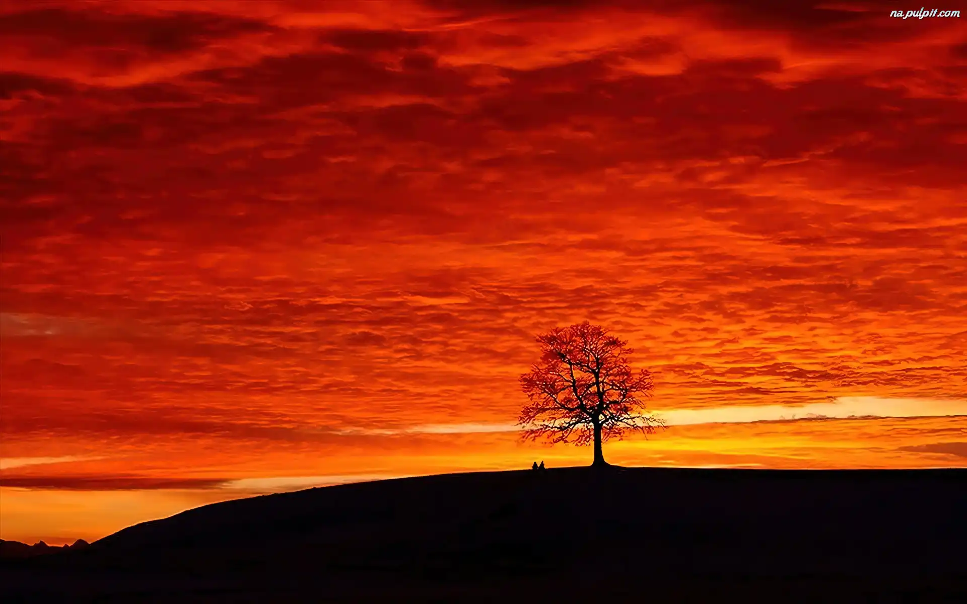 Niebo, Drzewo, Samotne, Pomarańczowe Na Pulpit