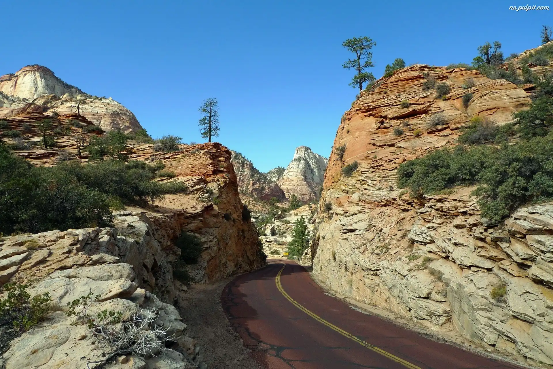 Niebo, Droga, Skały, Drzewa Na Pulpit