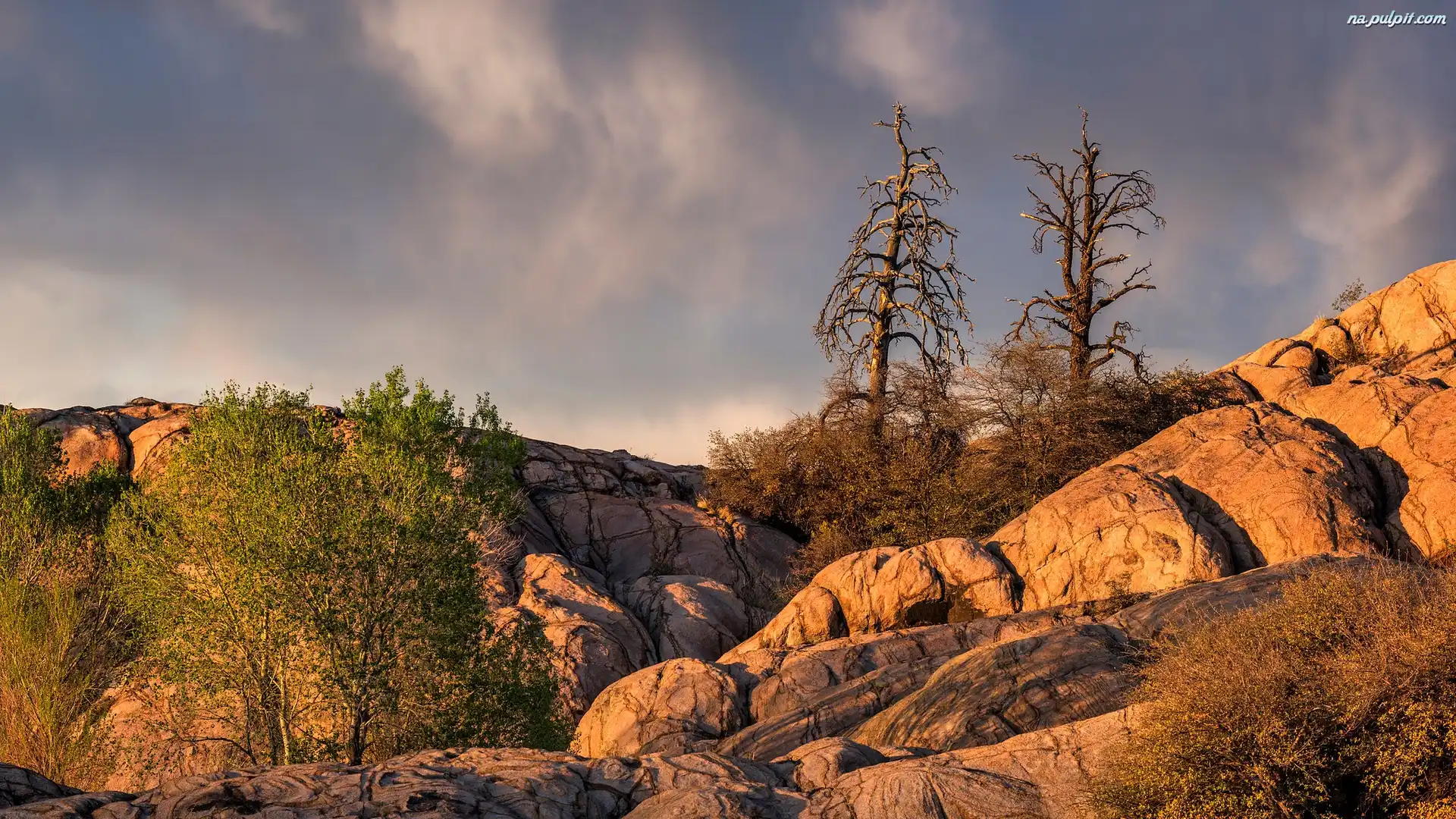 Niebo, Drzewa, Skały, Krzewy Na Pulpit
