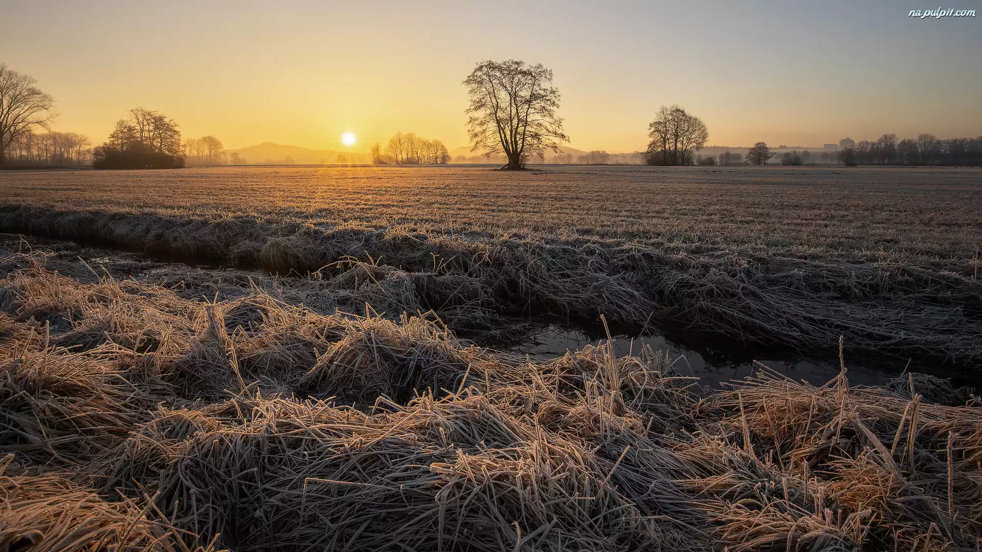 Drzewa, Pole, Uprawne, Niebo, Wschód Słońca Na Pulpit
