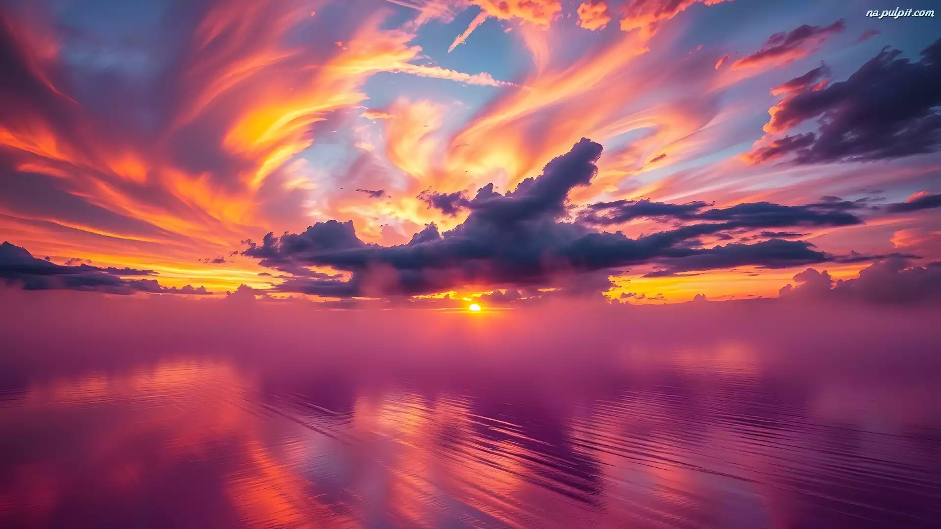 Jezioro, Zachód słońca, Niebo, Chmury, Kolorowe, Odbicie Na Pulpit