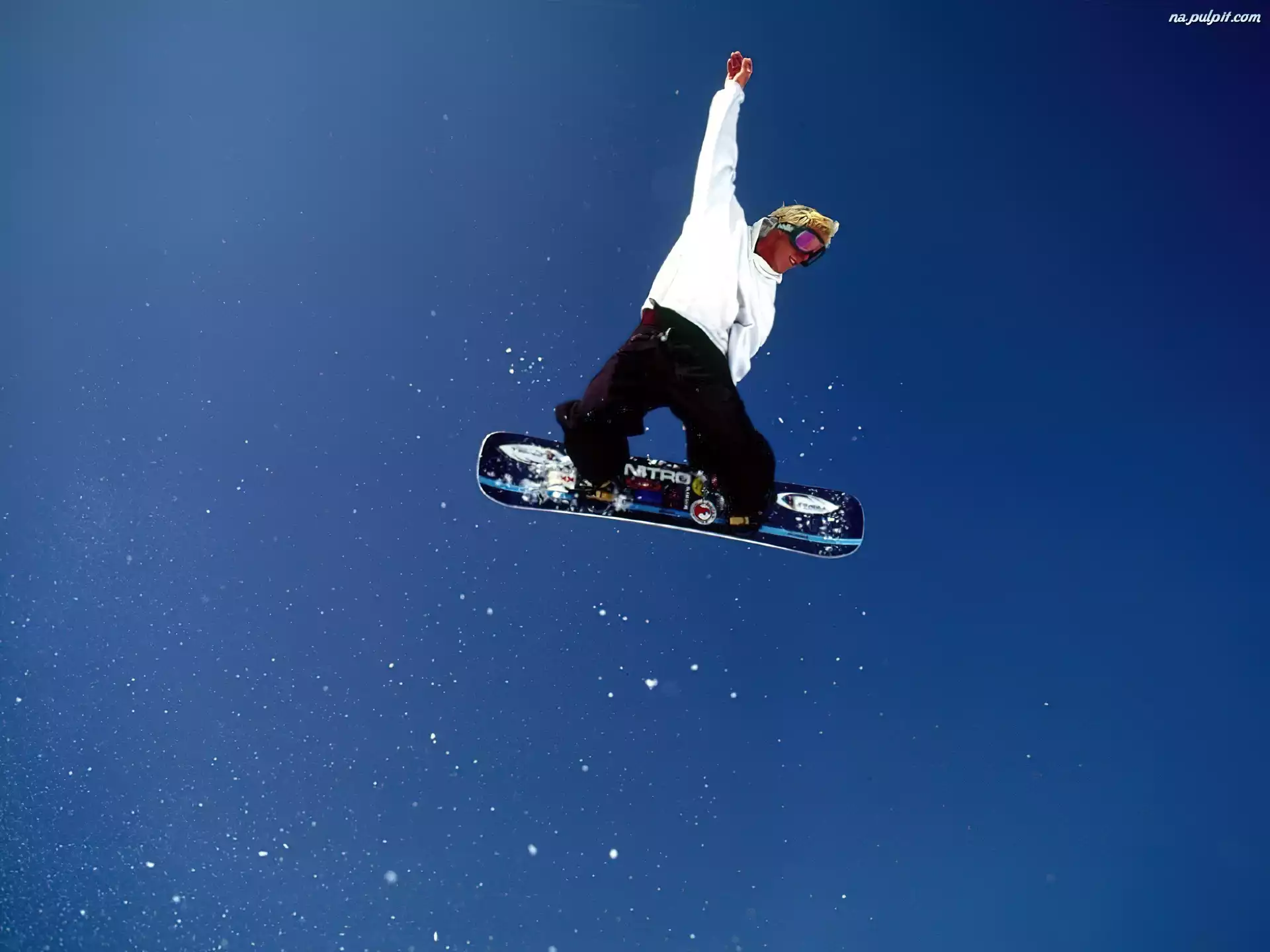 niebo, deska, Snowbording, snowboardzista Na Pulpit