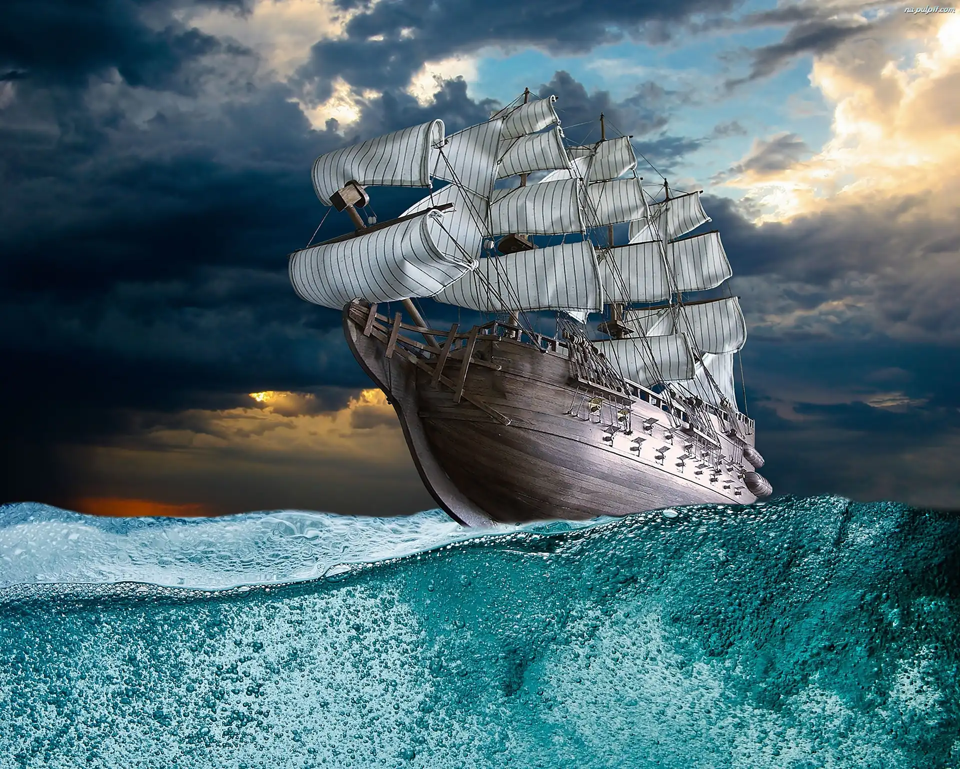 Niebo, Żagle, Statek, Woda Na Pulpit