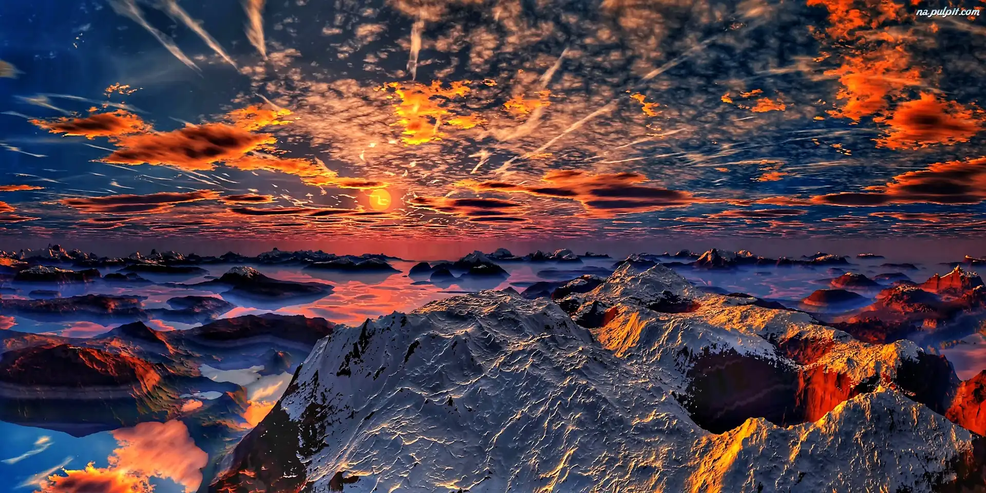Szczyty, Niebo, Chmury, Śnieg, Góry, Zachód Słońca Na Pulpit
