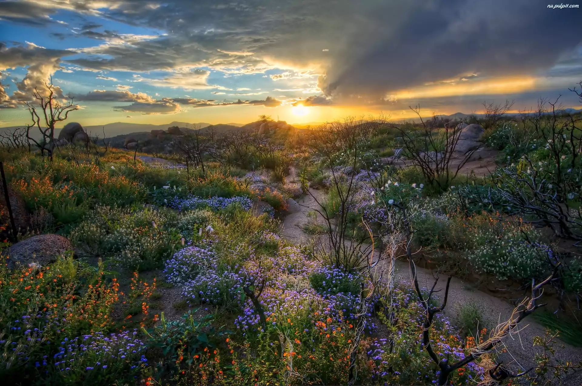 Ścieżka, Świt, Chmury, Niebo, Wzgórza Na Pulpit