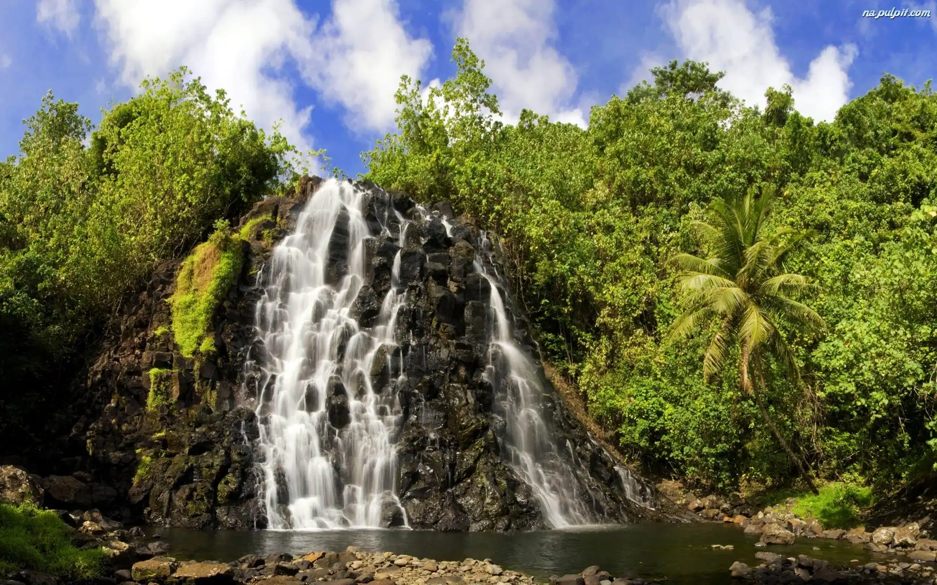 Niebo, Zielona, Wodospad, Roślinność Na Pulpit