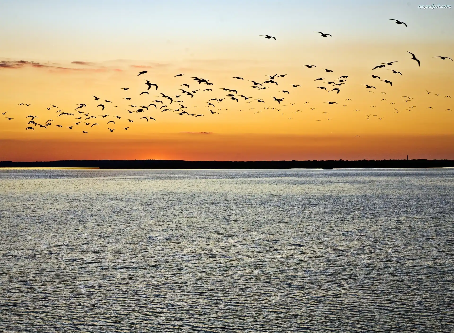 Niebo, Ptaki, Jezioro, Zachód Słońca Na Pulpit