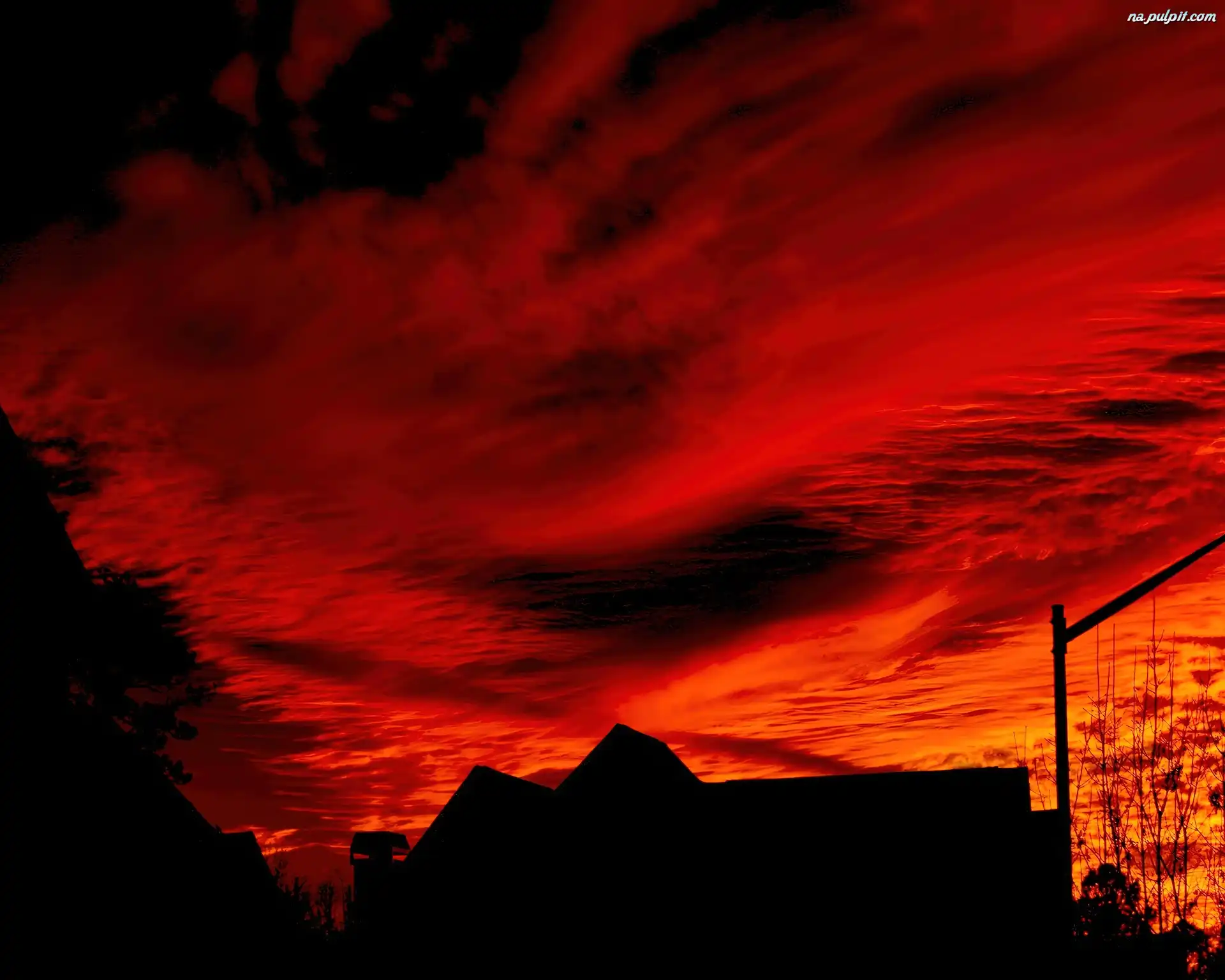 Niebo, Słońca, Zachód, Czerwone Na Pulpit