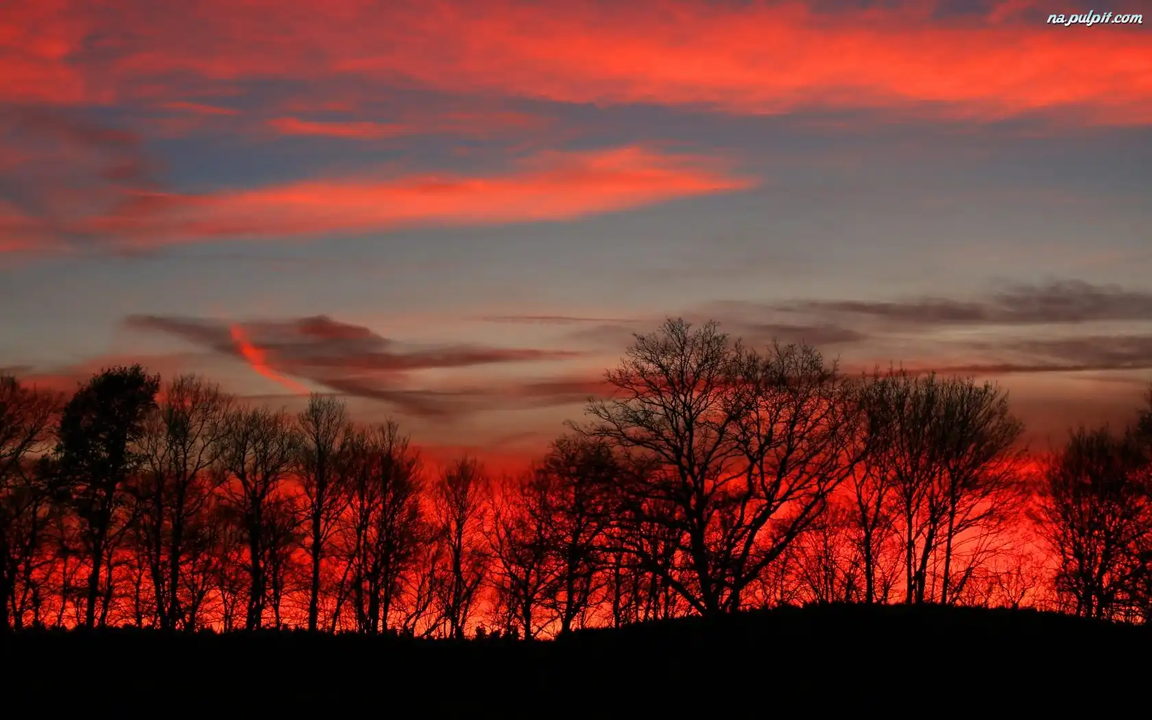 Niebo, Słońca, Zachód, Drzewa Na Pulpit