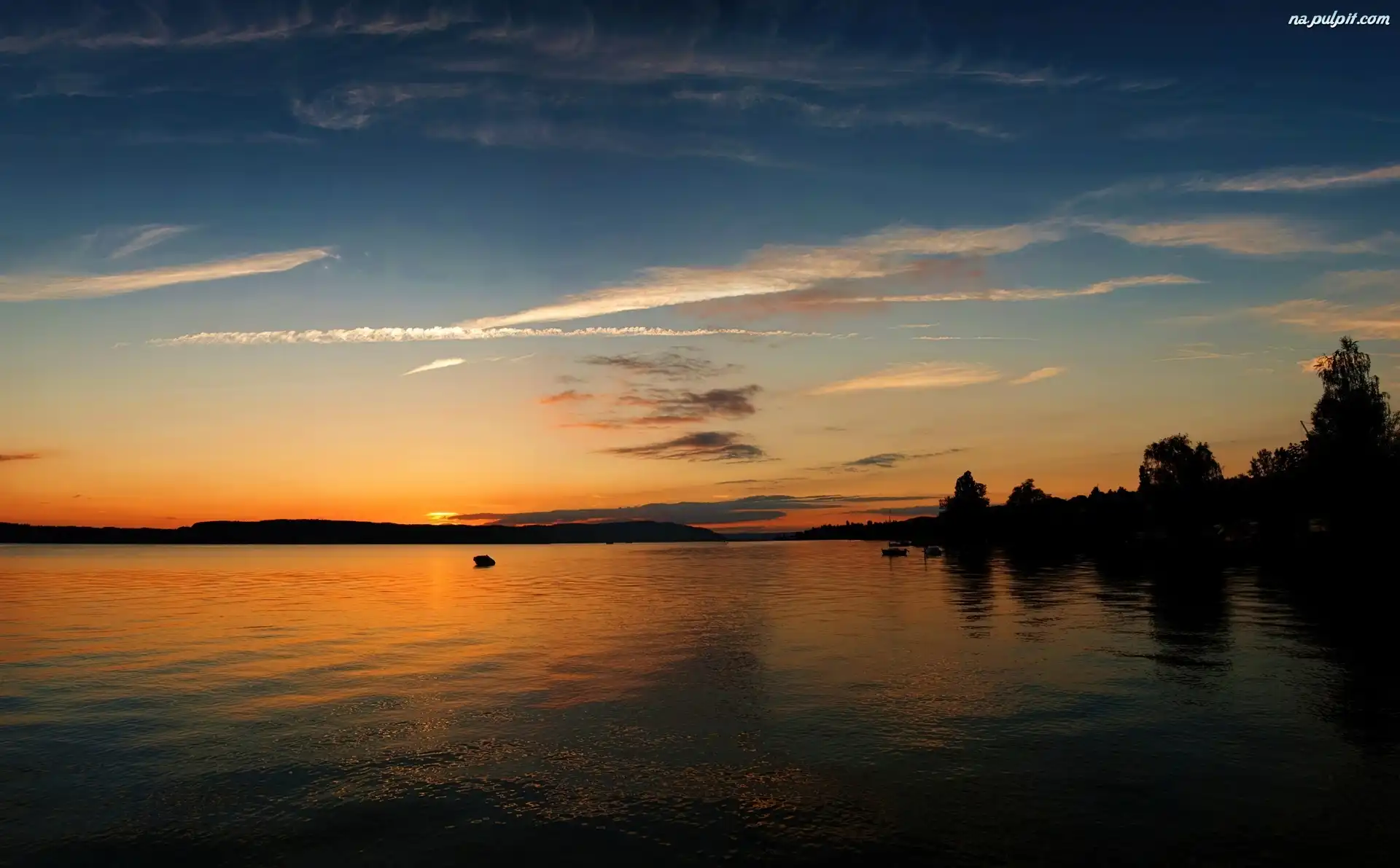 Niebo, Słońca, Zachód, Jezioro Na Pulpit