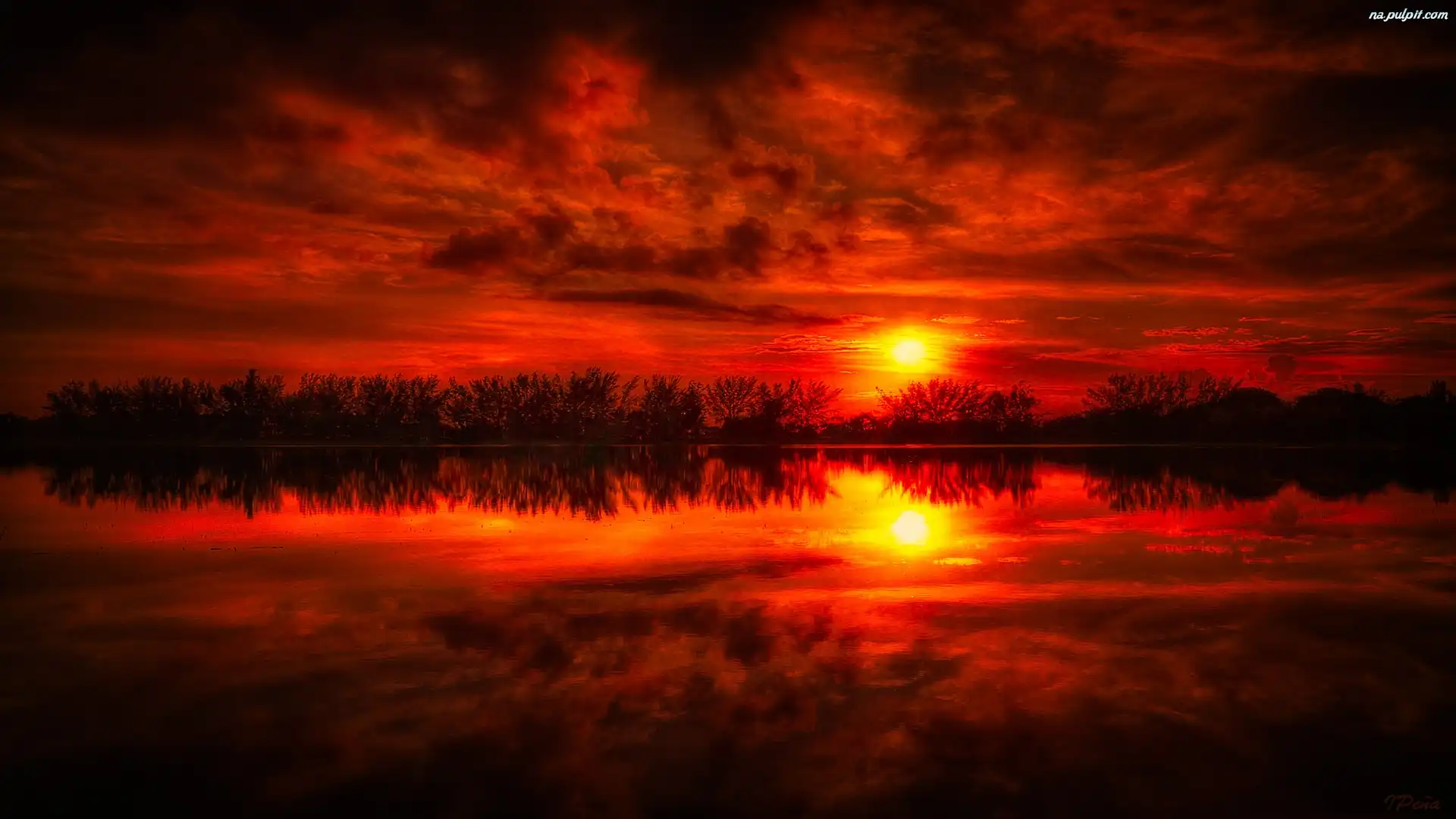Niebo, Jezioro, Słońca, Zachód, Czerwone Na Pulpit