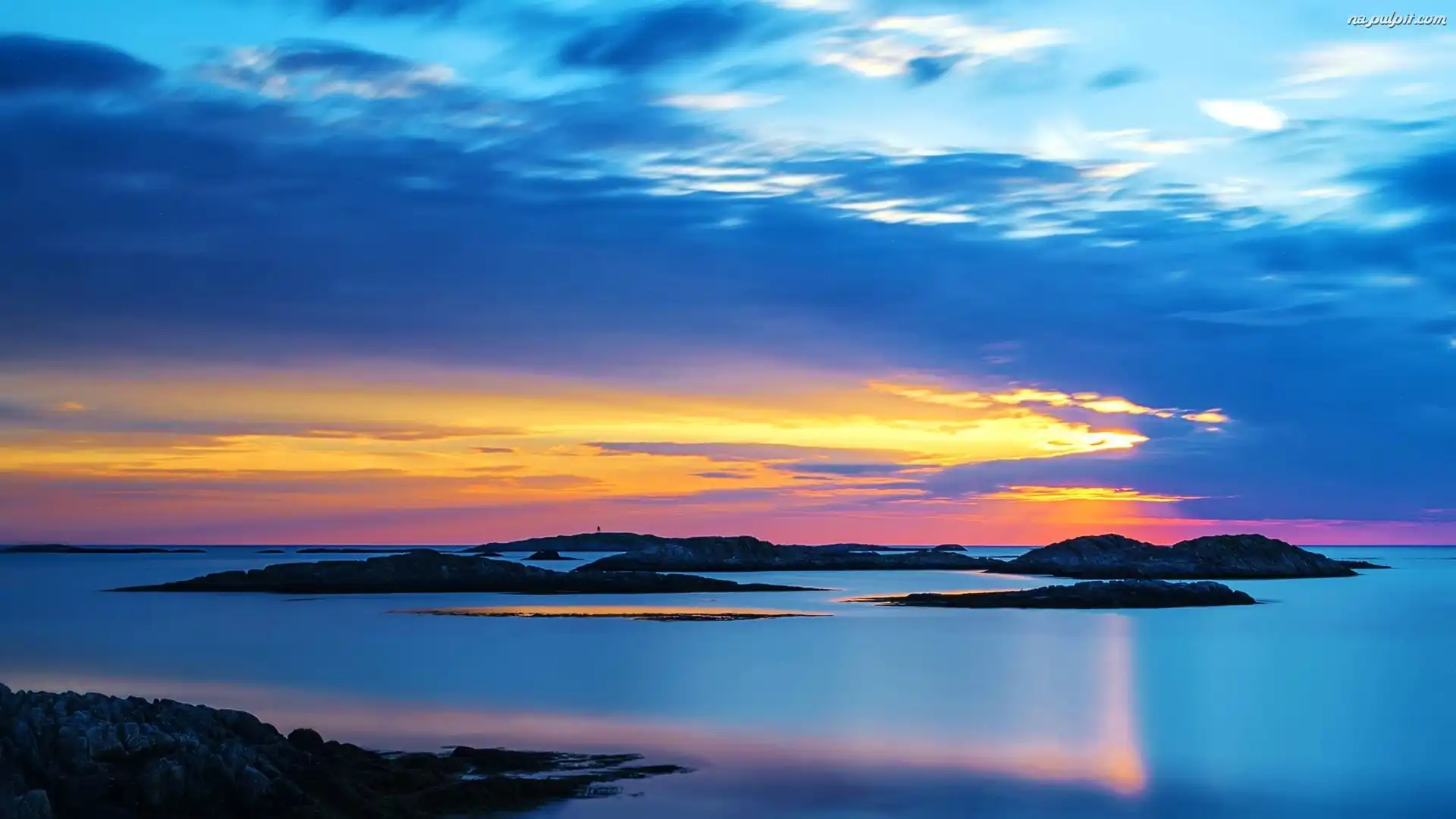 Niebo, Morze, Słońca, Zachód, Skały Na Pulpit