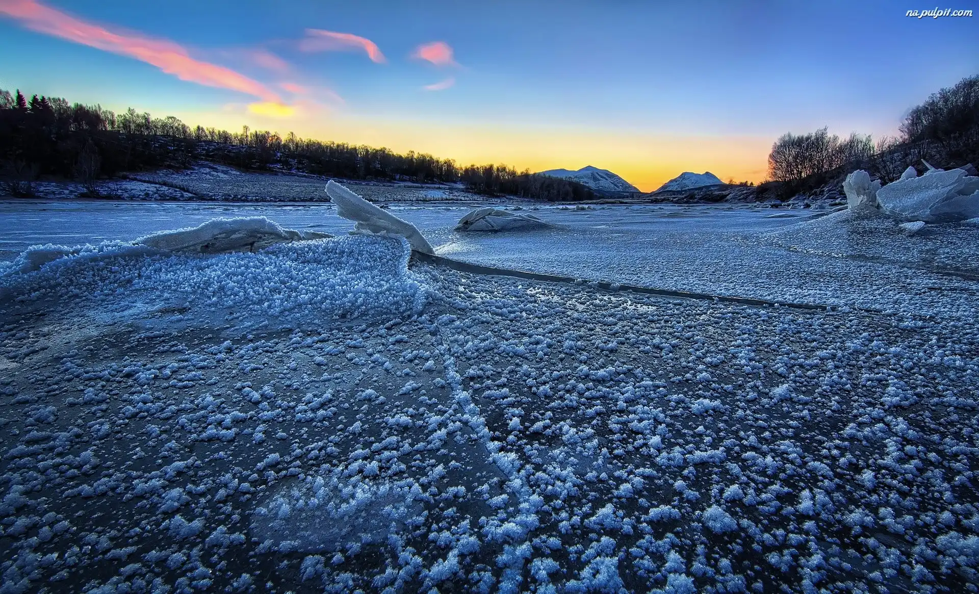 Niebo, Zamarznięte, Słońca, Zachód, Jezioro Na Pulpit