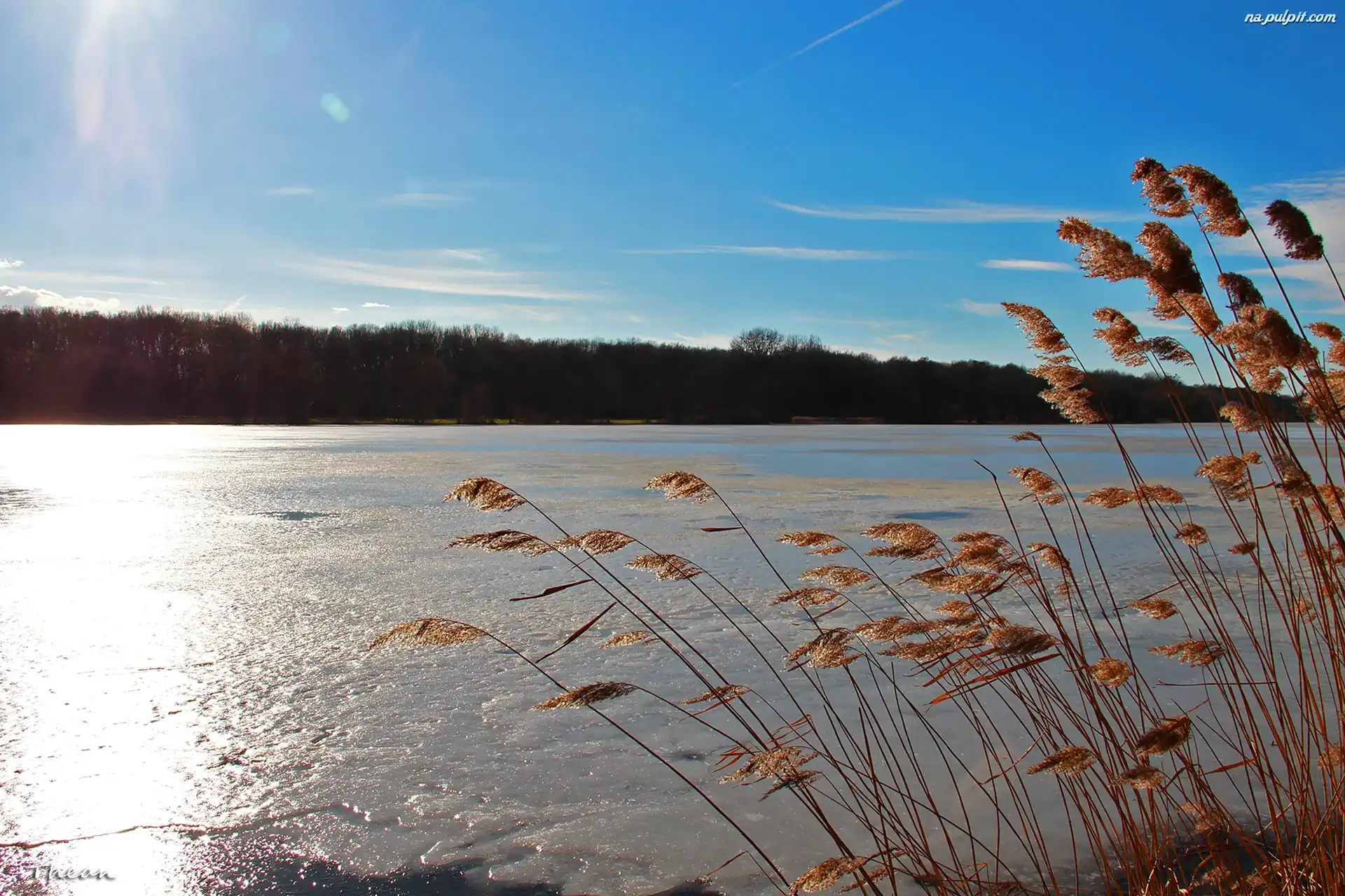 Niebo, Sucha, Jezioro, Zamarznięte, Trzcina Na Pulpit