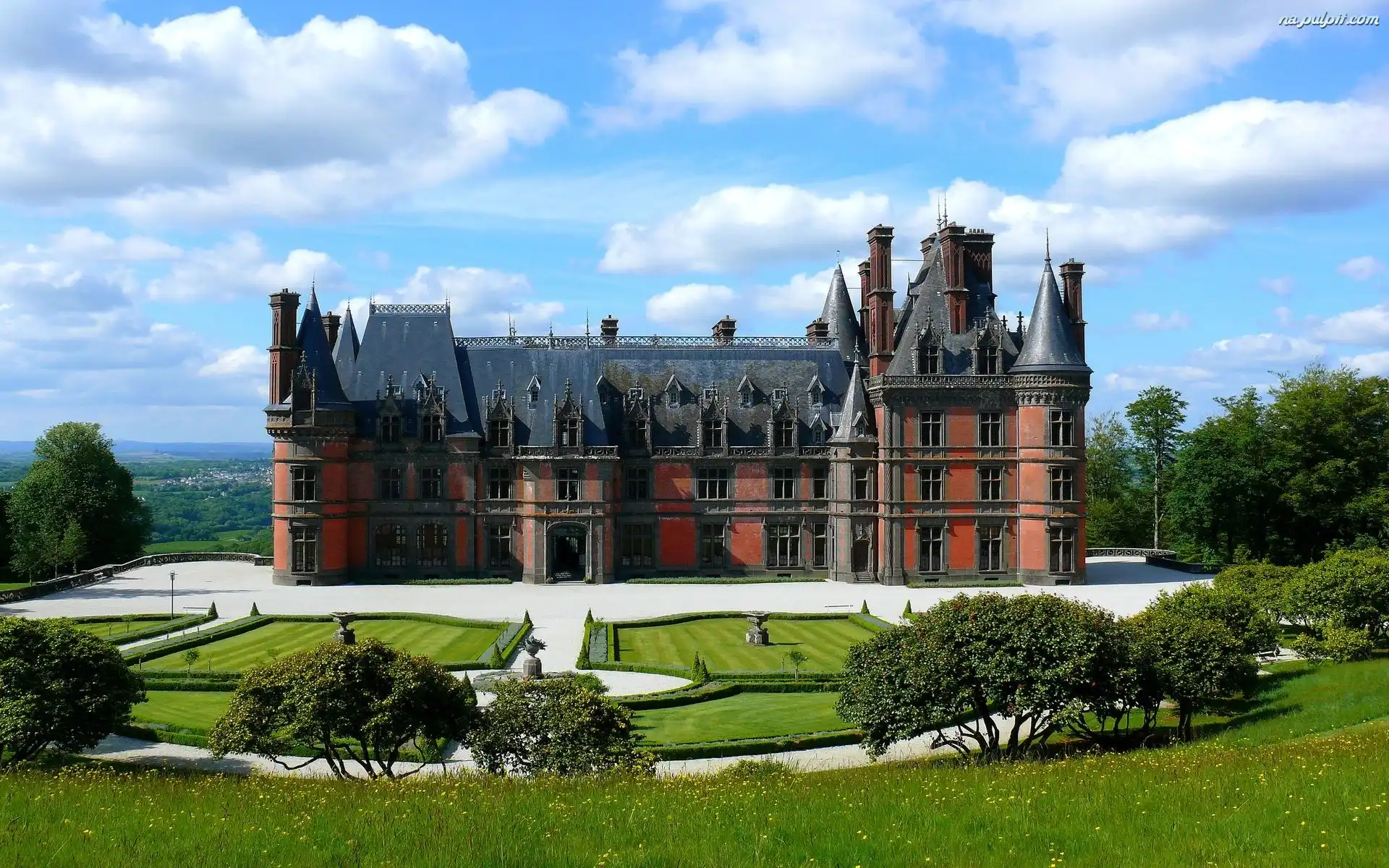 Niebo, Drzewa, Ogród, Zamek, Błękitne