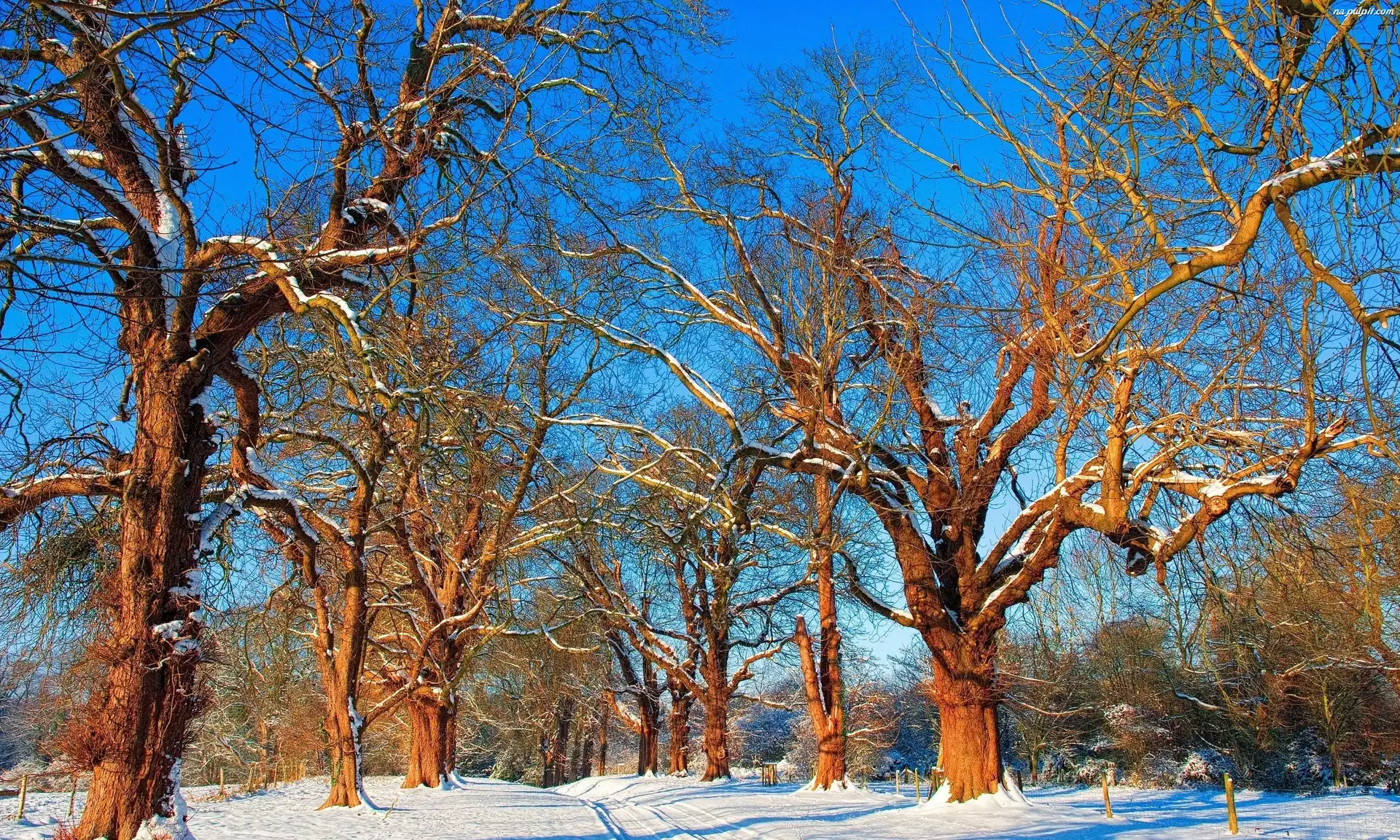 Niebo, Droga, Zima, Drzewa Na Pulpit