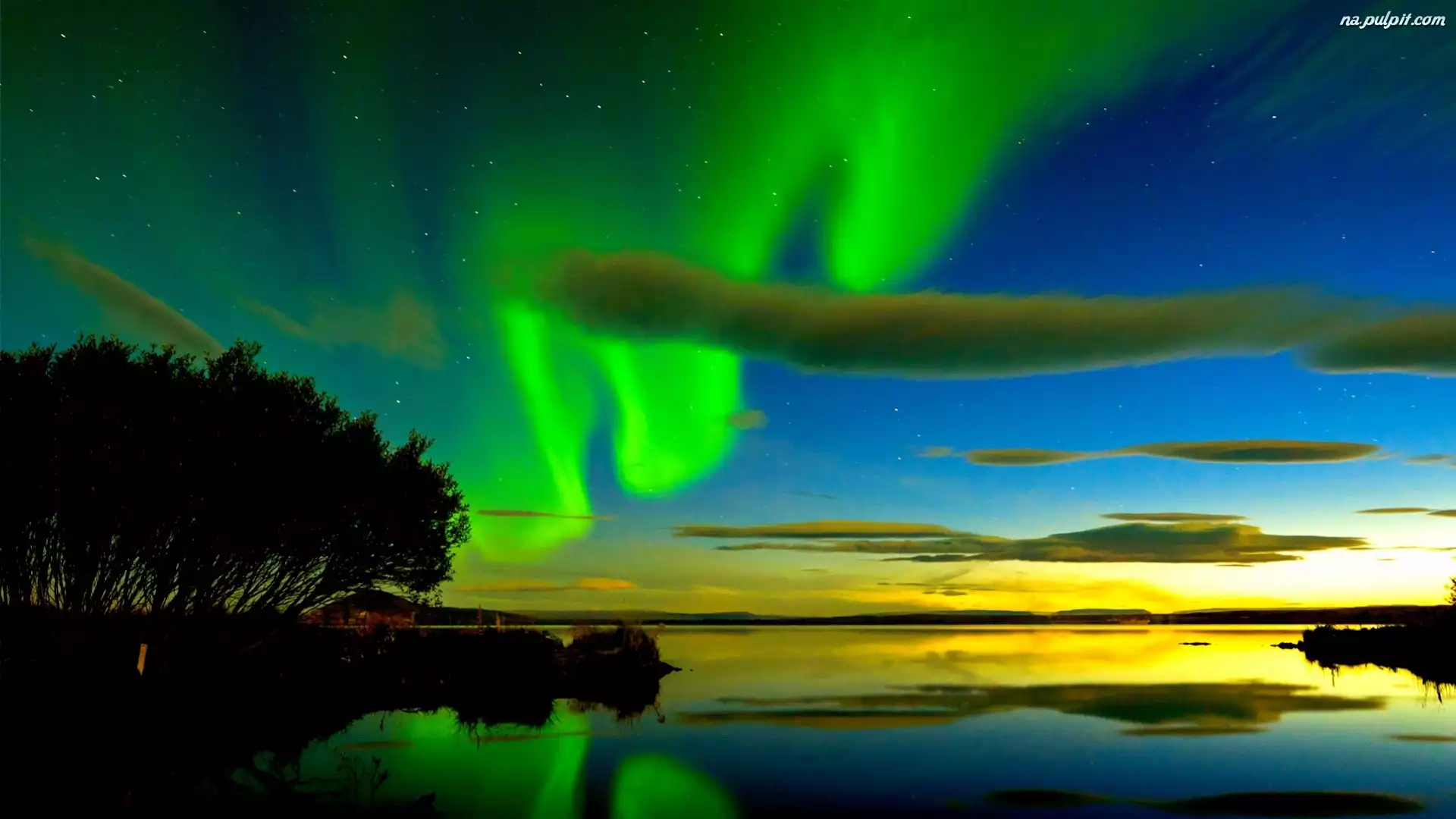 Niebo, Polarna, Zorza, Jezioro Na Pulpit
