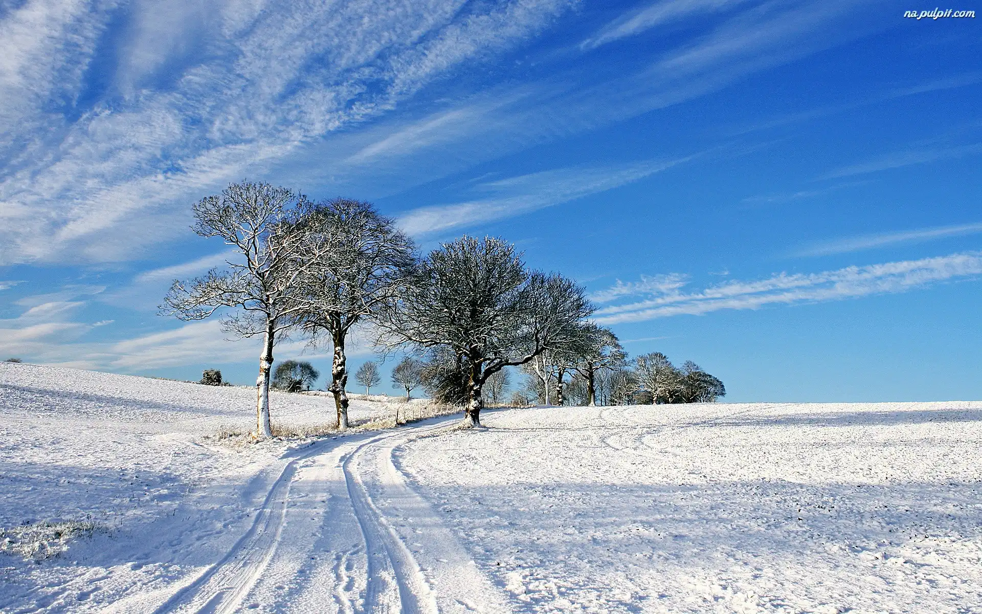 Nieboo, Drzewa, Droga, Śnieg, Błękitne Na Pulpit
