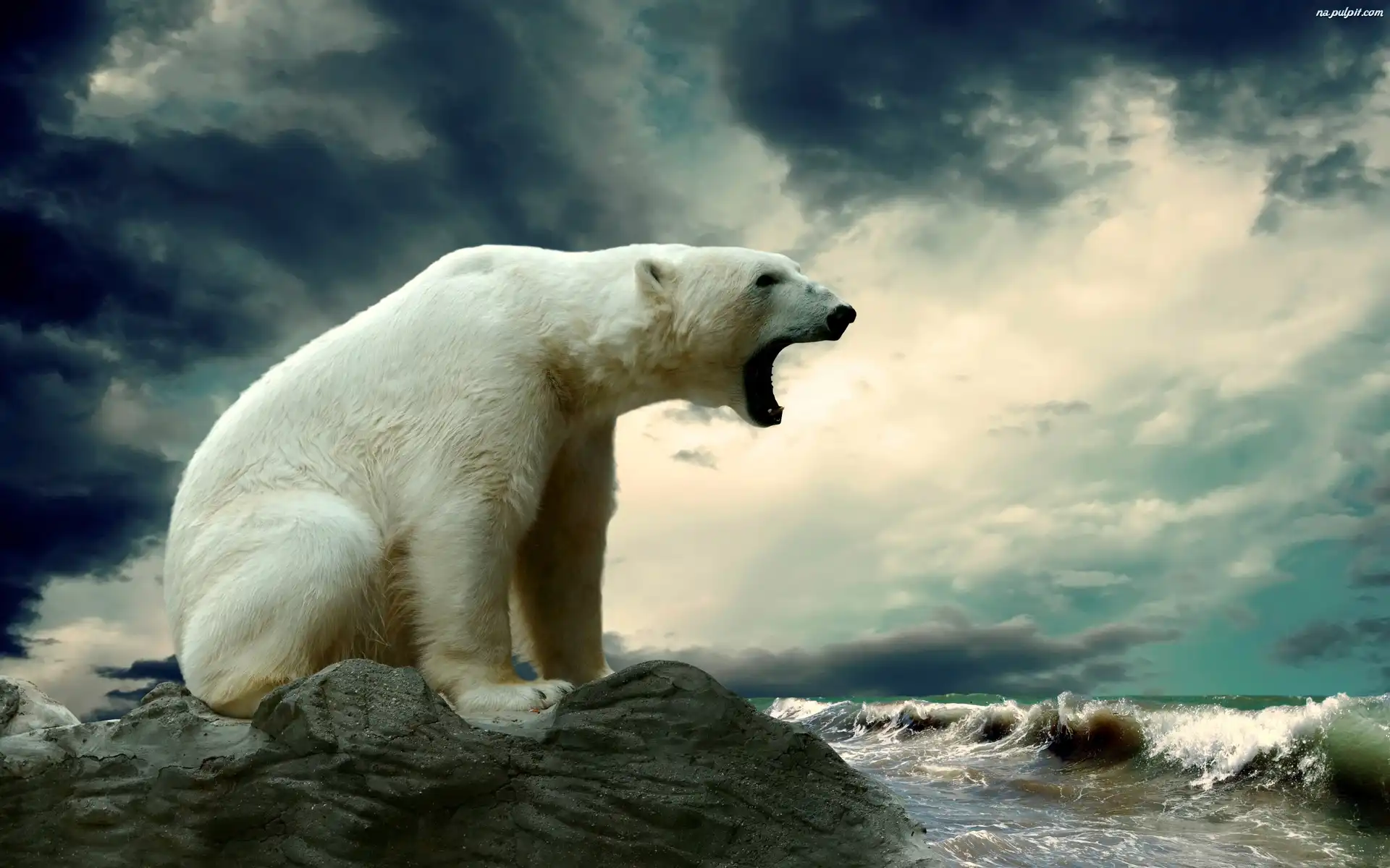 Chmury, Niedźwiedź, Morze Na Pulpit