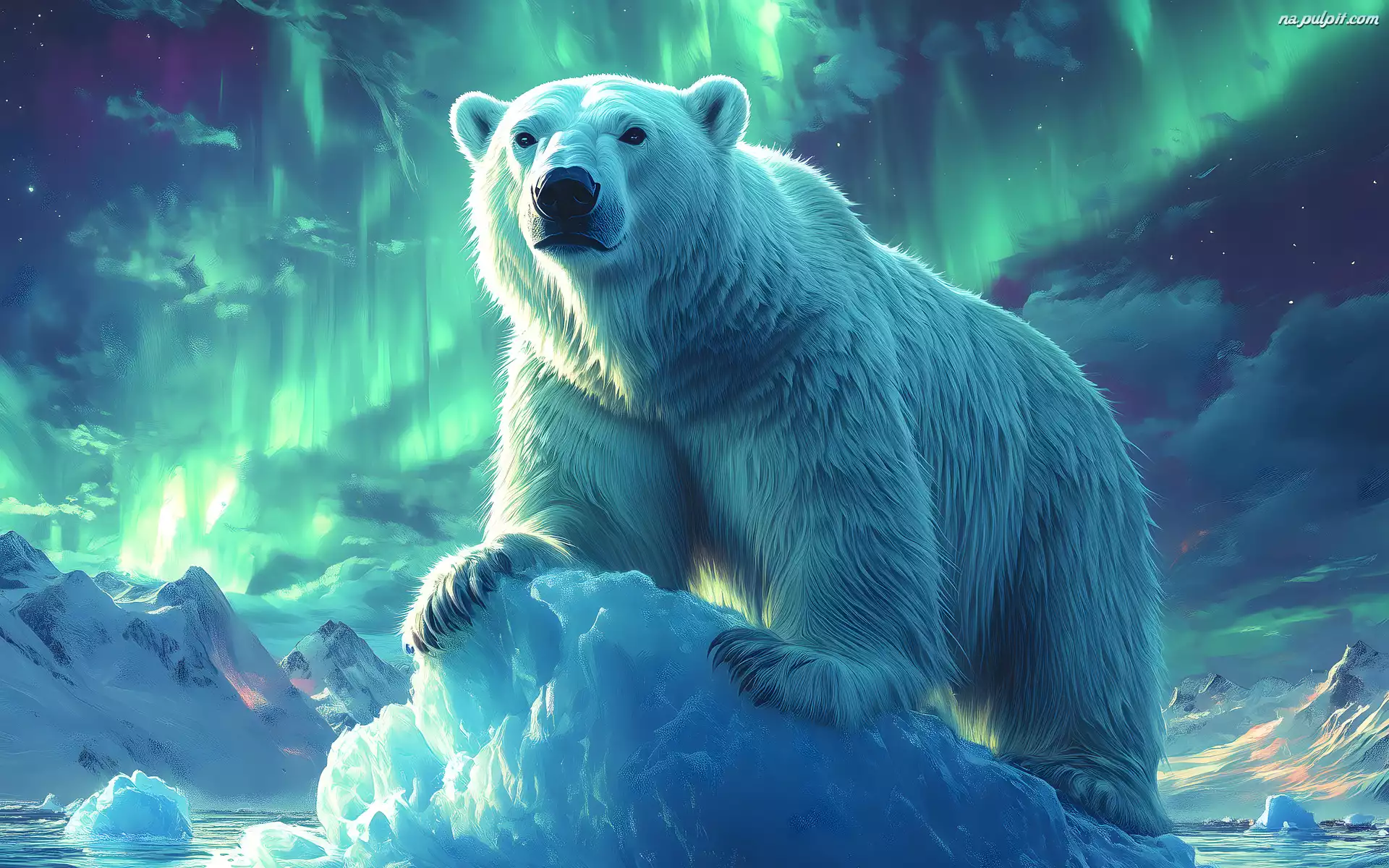 Grafika, Niedźwiedź, Polarny, Zorza polarna Na Pulpit