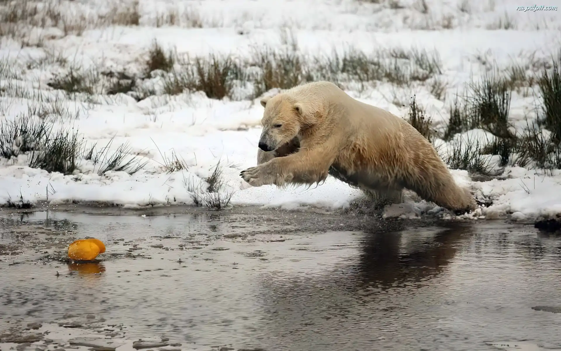 Łowy, Woda, Polarny, Niedźwiedź, Skok Na Pulpit