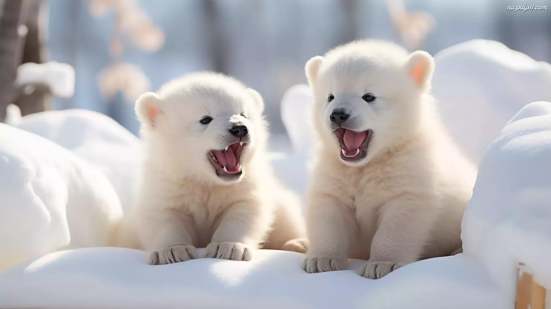 Małe, Niedźwiedzie polarne, Śnieg, Grafika Na Pulpit