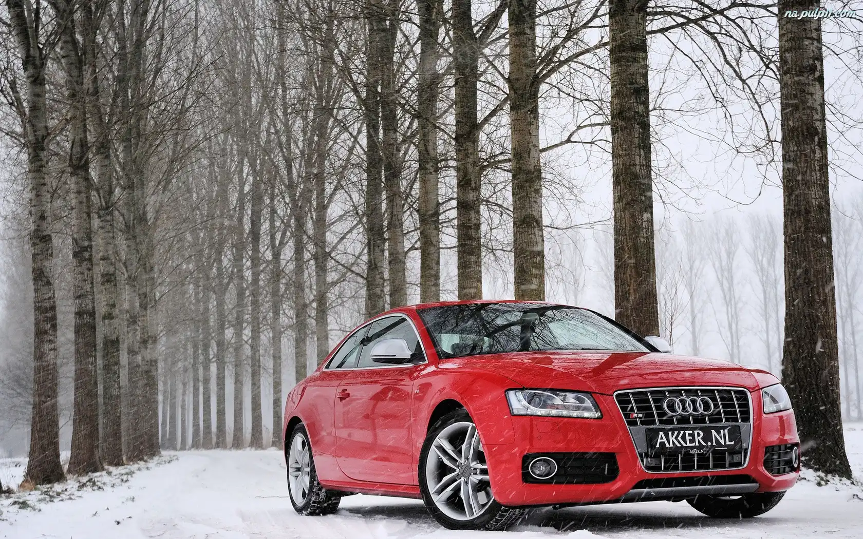 Åšnieg, Las, Audi S5, Czerwone, Droga Na Pulpit